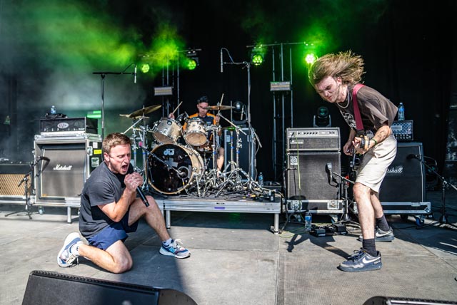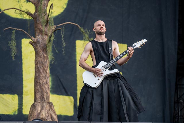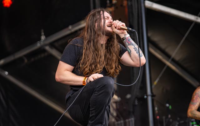 The unusually hot weather continued to test both fans and artists. Funeral Portrait started strong on the main stage with lead singer Lee Jennings voice ringing through the midday air. Their performance was only highlighted more by a surprise mid-set marriage proposal.