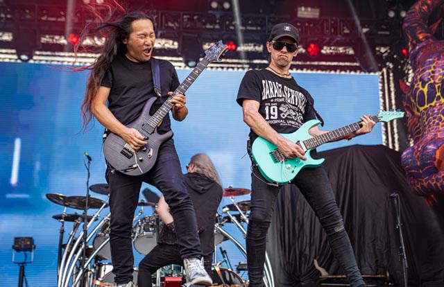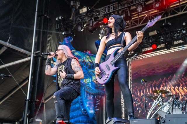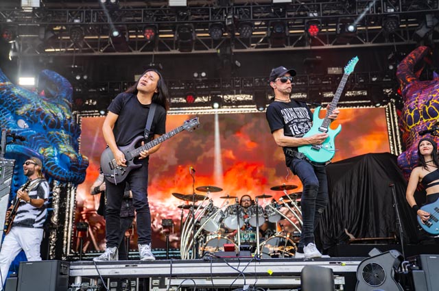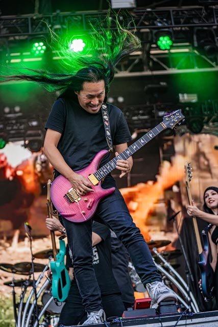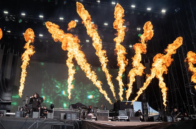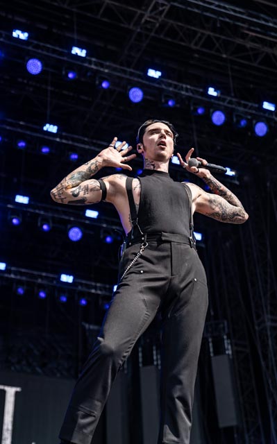 Motionless in White unleashed full pyro, with flames spraying the stage in a carefully planned design, although most of the band wore surprisingly toned-down makeup. I Prevail stormed back with their first show since releasing a new album—Violent Nature—with Guitarist Dylan crushing clean vocals, while lead signer Eric laid down both throaty growls as well as harmony matching tones.