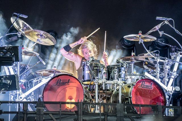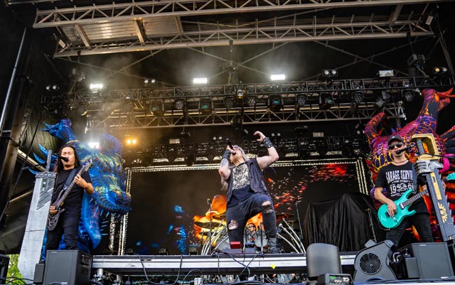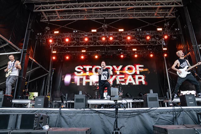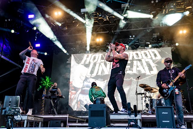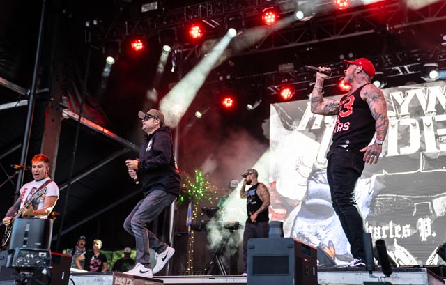 Story of the Year faced technical glitches, but the frontman’s resilience turned it into a display of raw talent. DWP stunned the crowd with a marching band rendition of The Black Parade to announce My Chemical Romance will headline THREE festivals next year, Louder Than Life, Sonic Temple, and Welcome to Rockville. Hollywood Undead electrified the side stage, bringing up a young fan and saluting their last-minute fill-in Louisville based drummer.