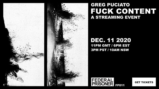 Greg Puciato (The Dillinger Escape Plan, Killer Be Killed, The Black Queen) has announced a unique streaming event titled, “Fuck Content.” The stream will take place on December 11th at 3PM PST / 6PM EST, and will remain available on-demand for the following 48 hours. Tickets along with selective merch are now available at this location.