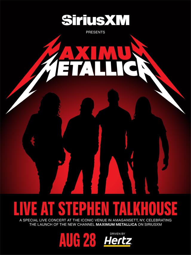To celebrate the launch of the channel, we’ll be hitting the stage next to the Stephen Talkhouse in Amagansett, NY, on Thursday, August 28. Fifth Members can enter to win tickets to attend this exclusive show; get all the details and entry info at metallica.com/contests. SiriusXM is also offering fans the chance to win a complete trip to the show from anywhere in the U.S. If you cannot join us in Amagansett, the full show will be recorded and broadcast on Maximum Metallica (Channel 42), premiering on Monday, September 1 at 12 PM ET / 9 AM PT, with replays throughout the week. The show will also be available to stream on demand on the SiriusXM app.