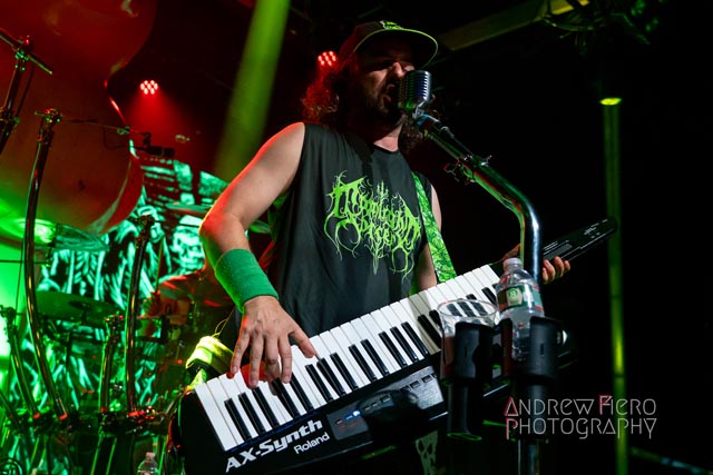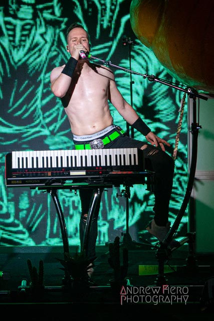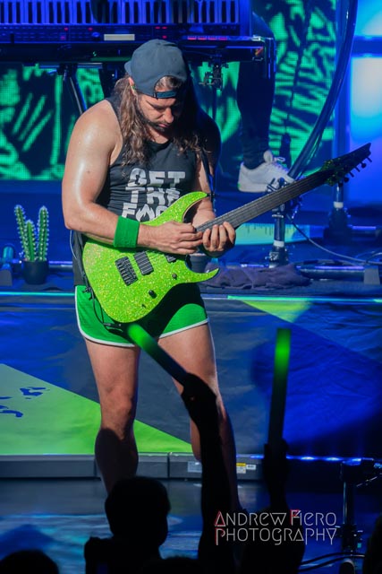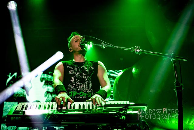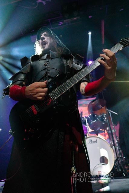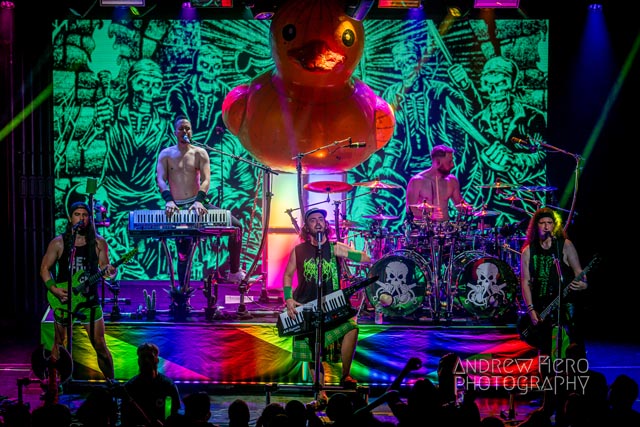 Armed with the finest gang of musicians and a lot of keyboard heroics, Alestorm managed to dominate the venue with their scintillating brand of plank diving music from Máté Bodor (guitar), Gareth Murdock (bass), Peter Alcorn (drums), and Elliot Vernon (keyboards with black metal-like backing vocals). Known for simplistic heavy metal party anthems with some atmospheric epics, the band delivered a show that delved into themes of authenticity, fun, and heavy drinking—inviting fans to feel like they’re living it up on a ship anchoring in international waters- the land that law forgot. Alestorm took merciless aim at the plentiful opportunities that aided the horde in front of them, and in the process of diving into their back catalog, did not spare themselves from plundering the sizzling stage with the scenic duck skyscraper as their backdrop. The overwhelming sense of entertainment is inescapable as vocalist and key-guitarist Christopher Bowes kept the musical sails tripped with his lively and playful stage wraps, which I’m certain differ from night to night.