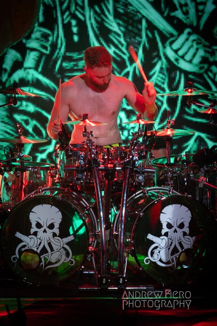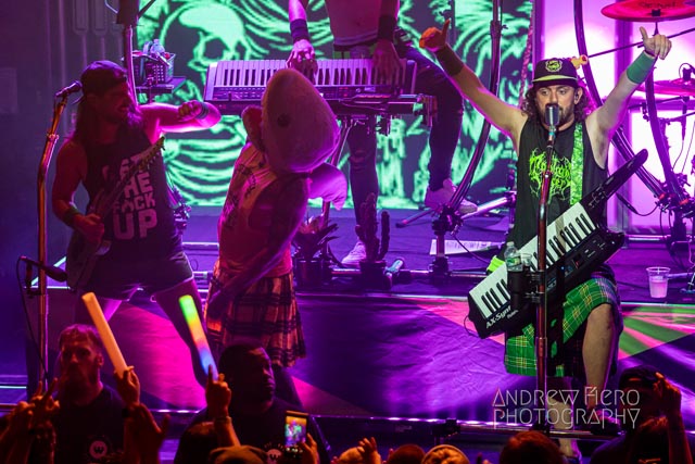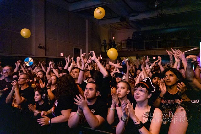 The shattering set started with The Land of Unicorns. Gloryhammer kicked out ten magical bangers with a mixture of anthems from their discography under flaring conditions. Angus and the other elected officials of their nations would often hype the dynamic audience in a fire-spun climate with their banter. The costumed fans scattered throughout the stage area further amplified that, as we were glad to see some of the best cuts like Gloryhammer’s namesake song, Universe on Fire, and new favorites, a part of the set, He Has Returned and On a Quest for Aberdeen. In a condensed live setting, Gloryhammer further synchronizes what crowd participation can contribute to modern traditional metal from the inclusion of unionized clapping and sing-a-longs without getting too wibbly-wobbly, timey-wimey concerning the fictitious lineage in the discography timeline. Gloryhammer ended the third performance of this U.S pillage with The Unicorn Invasion of Dundee, followed by one of the many wild charge highlights of the concert. The New York hootsforce pledged allegiance to the Hootsman as Zargothrax crowned him as king Hootsman of Unst to conclude a cosmic performance. The New York chapter of Fife had a great time seeing them. All had hoots for the night to go full swing for the pirate metal drinking crew, Alestorm!