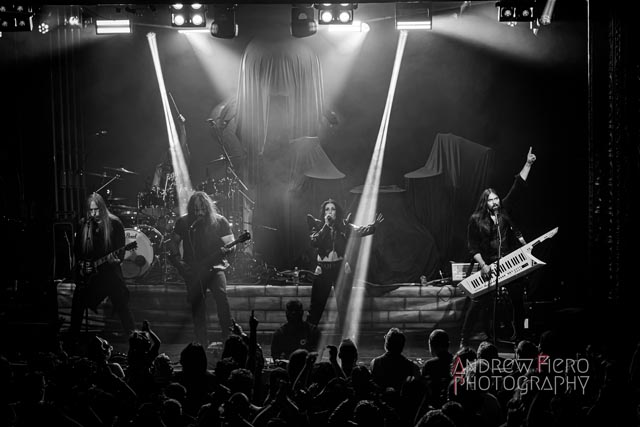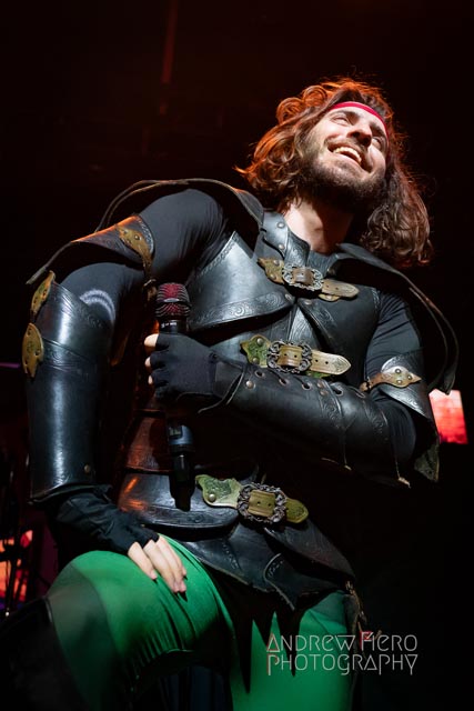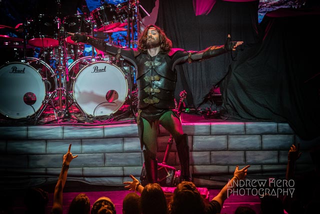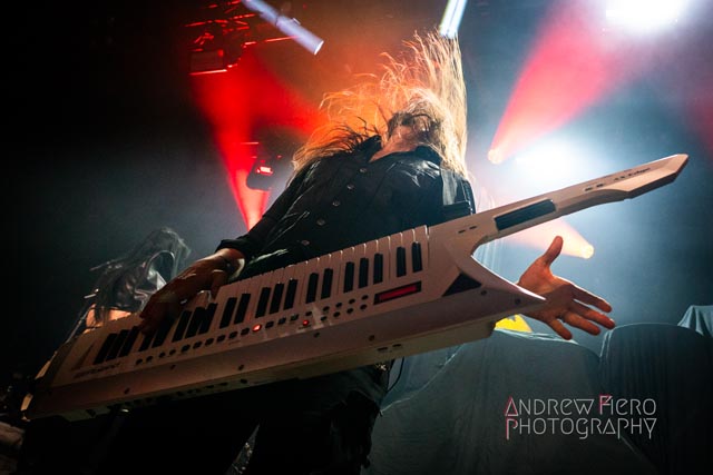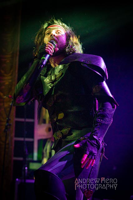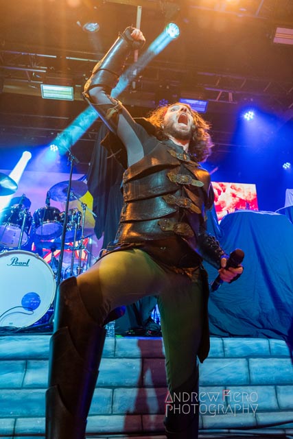 Gloryhammer is renowned for its celestial and immense presence on stage as the brainchild of Alestorm’s Christopher Bowes. A seasoned project with the united forces of Hoots in Canada, America, Europe, and all over the world over the years, and their superb stage performances while double-headlining with bands such as Beast in Black. So when it was time for Gloryhammer to support Alestorm, a band they’ve shared the stage with in the past, they spared no expense and effort to make a direct support slot a striking one. After heeding the call of Glyph, it was time to journey to the celestial dominion of Fife. After an incoming transmission at 8:00 PM by way of troubadour Tom Jones, serenading us with Delilah, leading into the moment the New York hootsforce was waiting for. The return of Gloryhammer with Angus McFife II (Fife), the Hootsman (Unst), Ralathor (Cowdenbeath), Ser Proletius (Crail), and Zargothrax (Dundee) lit up the stage to usher in fifty-five exciting minutes of role-playing music.