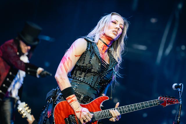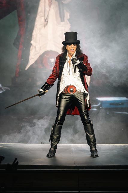 Judas Priest deploys a full arsenal of metallic confetti to make the most of nearly two hours on stage, with something for everyone that gathers to see them, stacked with groove and might, made to be heard, without blocking your eardrums with cheap earplugs. And no Judas Priest set-list would be complete without sending off everyone feeling happy to discharge a thunderous set with two of their gigaton hits in Hell Bent for Leather and Living After Midnight before the final, menacing dosage of plasmatic night shade started to take effect for the frightmare circus from Alice Cooper.