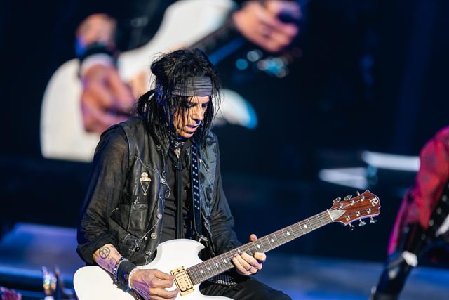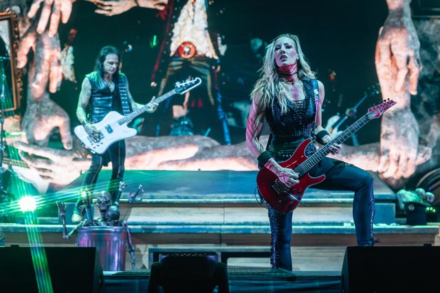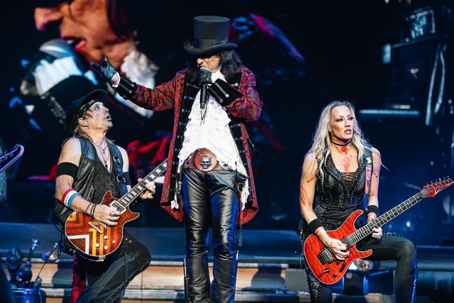 What began with a loosely connected medley starting with Hello, Hooray and already respecting the deep cuts via an abridged version of Who Do You Think We Are, setting up the sick things of New Jersey for a song list of nineties dark swing, eighties style hard rock, and a deluge of seventies dirty diamonds, bounded together by that patented Cooper charisma. With the terrorizing parade commenced by Spark in the Dark, the Coop troupe solidified into a phantom force to be reckoned with. Never an artist to remain creatively confused when delivering cursed tales of the bizarre, an Alice Cooper production is essentially a fusing of the visions of its two principal showbiz ideals: big hooks and bigger moments. That said, Alice’s band converges for a singular performative mission—one that defines the totality on his villainous turf, not as separate parts, but as one monstrous unit. The Coop himself is obviously running the show here—but a show stopping force like Alice Cooper is only as good as the stars he is performing with, and what a wild party it really is for all four of his longtime band members—and we all know about Alice’s wailing femme fatale named Nita Strauss sneaking the shred alongside Ryan Roxie and Tommy Henriksen. There is that dark, pulsating groove for eternity, the nonstop assuring vibrations in the middle of the hot licks when Alice has his biting bassist Chuck Garric, and a lively drummer in Glen Sobel, parting shots with Chuck to keep the topsy-turvy sideshow locked in. And rightly so! Alice’s band is incredible.