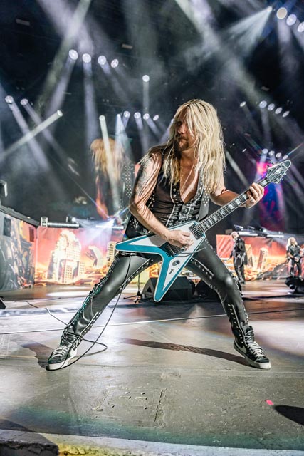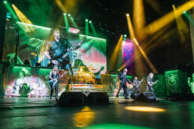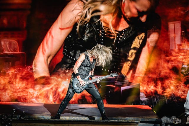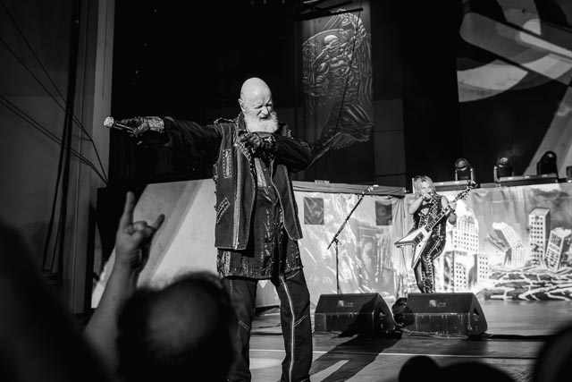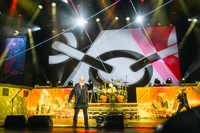 What about their gig? Priest delivered. While memorializing Painkiller, and playing the hits, another one-of-a-kind moment during their time on stage, was a heartfelt tribute to so many rock legends throughout Giants in the Sky who are no longer with us and that was a great moment—which had the faces of Chris Cornell, Jill Janis, Lemmy Kilmister, Ronnie James Dio, was just a few of the superstars shown on screen—the loudest reaction from the audience happened when Ozzy Osbourne appeared on the big electric canopy—absolute class from one of the all-time influential heavy metal bands to ever exist. The stage looked well put together. In this large music hall setting, the band uses screens displaying different backgrounds and animations that correlate with the songs—but without blocking the performative elements of the musicians—same for the light show. Everything comes together when night comes down, where the overall metal mania will stand out so much more! Judas Priest is without peer, as evidenced by another great gem, titled Solar Angels, and one of their defining set-list staples, Electric Eye. The megastars brought the house down. Judas Priest are pioneers of the metal genre, always pushing forward to provide an electrifying performance, which is always the surge of explosive auditory dynamism from Rob Halford and company.