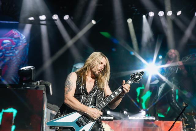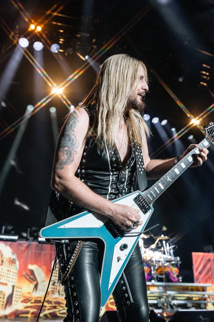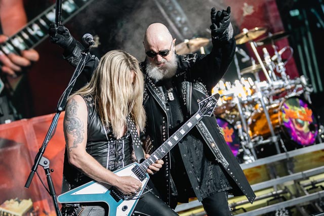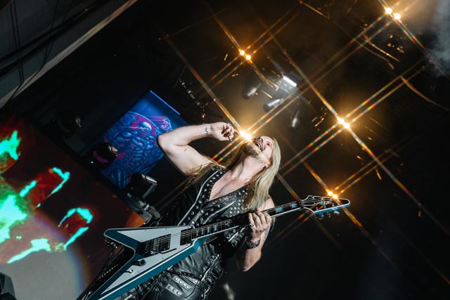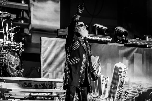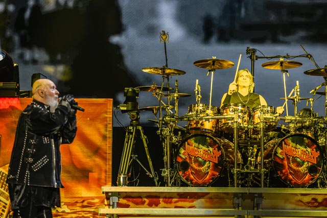 A sinister icon of vaudevillian classic rock since putting a hex on the summer of love back in 1967, the spectral barron of the Hollywood vampires, Alice Cooper, astral projected himself from an astonishing tome found in Alice’s attic for even more of the best yet to come for an hour and then some, a shackling rollercoaster of musical surrealism and a big bloody stageshow. Now, this double-headline bill bookended by Alice sees an all-new theatrical nightmare for this shock rock renegade to trick and treat a huge Holmdel crowd with his form of malice, and to mirror the set-roll, career-spanning duality of Judas Priest.