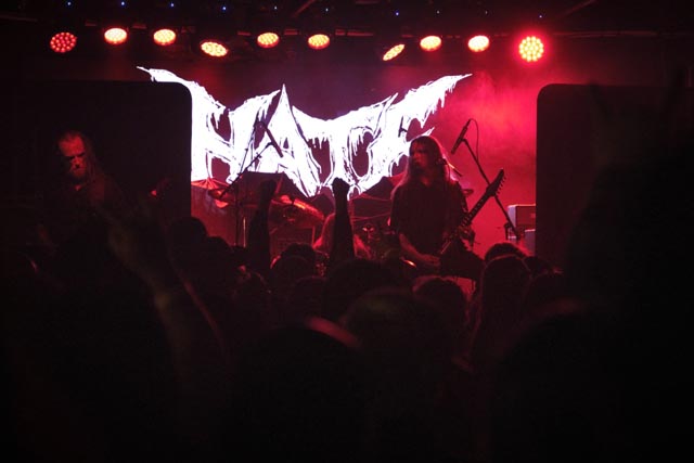 Not far from the group bulldozing a clear path for the event, an assembly of fans who arrived early signaled that Narcotic Wasteland is, without debate, a perfect opener for an acidic tour of this magnitude. As I looked around, a vivid Williamsburg crowd had gathered in place of what is usually a light start to a metal show; the now-growing metalized cluster did not fail to summon its support. For the duration of their set, Narcotic Wasteland performed the kind of riff-filled, crushing heft that makes you want to morph into the mosh pit or simply watch the execution. With awareness of Narcotic Wasteland beginning to build, the brainchild of Dallas Toler-Wade is receiving more attention, with support at gigs and on social media. A key factor in the deserved praise they are receiving is the band’s continued approach to unceasing touring, particularly their unified professionalism. Narcotic Wasteland performed Introspective Nightmares to conclude an intense selection of powerful songs, energizing the crowd and seamlessly setting the stage for the arrival of Hate from Poland.