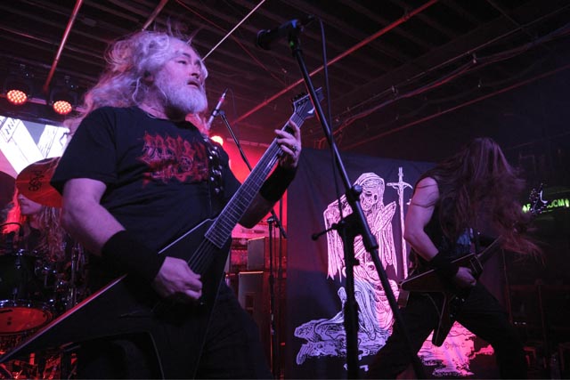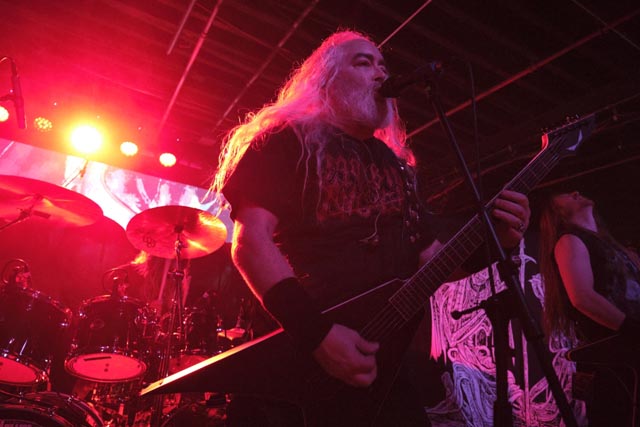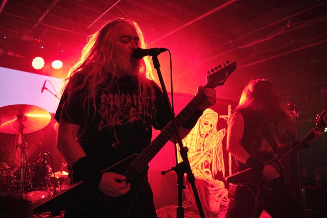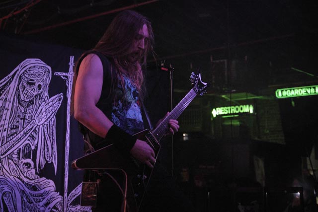 While more of a jeans and t-shirt type of demonism like Narcotic Wasteland, Brooklyn faced an encounter of another kind, representing fiendish melodies when the titanic Incantation set out to accomplish a forty-minute pummeling, all in the spirit of no frills death metal, in front of a horde hungry for more unholy spiciness. The band aided in the ongoing demolition. Starting with Golgotha, Incantation had no one relaxing. The instant their riffs landed, bodies pressed closer to the stage, a wave of fists and hair surging forward as the pit erupted into motion. The foursome fueled this raw chaos with a bloodthirsty sense of consistent domination, channeling frantic heaviness that hit with enough force to make you snap your neck clean off your vertebrae.