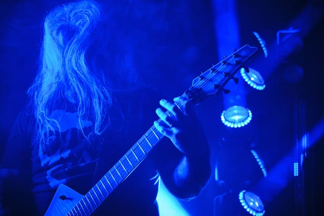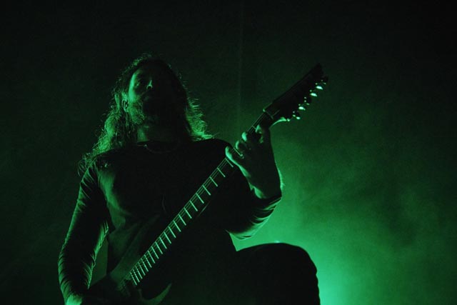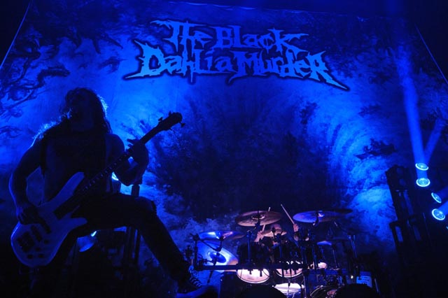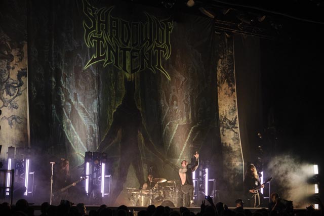 Shrouded in chiaroscuro, lit by shades of various color combinations anchored by the light of a greenish glow, and unleashing their transcending glitz upon Manhattan — Shadow of Intent, the supernova four-piece was up next to hypnotize the phantom mass of MSG to ring in chaos control. Technical without the laser focus of music theory, seared by agility, and fearless in spacing out the symphonic side of death metal, Shadow of Intent wasted no time purging NY via their 30 minutes on stage, instructing crowdsurfing and keeping the pulse of the pit moving. One of the most prominent aspects of Shadow of Intent’s sound is its resistance to being confined by typical death metal arias. Prioritizing mechanized demolition and passion over devotion to a single extreme-metal style, Shadow of Intent elaborates on an approach that yields a clear interpretation of hardcore-influenced death metal. Burning the auditorium fueled by seven synchronized shots of cosmic slaughter, Shaow of Intent is a powerful burst of wickedness, outlined by guitarist Chris Wiseman, bassist Andrew Monias, drummer Bryce Butler, and joined on tour by Adam Mercer (formerly of A Wake in Providence), coming in clutch to honor the hyperspace screams on the mic. At the same time, vocalist Ben Duerr was absent on this run to be home for the birth of his child. From the imprisoning opener of Prepare to Die, sinking their claws into the mob of metal-heads through Vehement Draconian Vengeance and Infinity of Horrors, adding-on a tried and true wall of death in the middle of their set, seeing this band live is nothing short of an experience – a fine example in suspense, liberation, and organized mania to deliver a striking mix of Master Chief-approved dark, heavy compositions, offering fans a glimpse into the pocket universe of Shadow of Intent. With the final presentation of The Heretic Prevails, they dazed an at present larger gathering of New York’s best dressed for the Black Dahlia Murder to rip them phantom limb to limb.