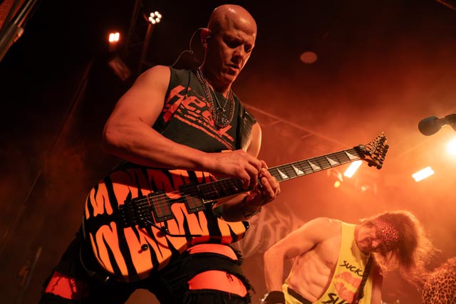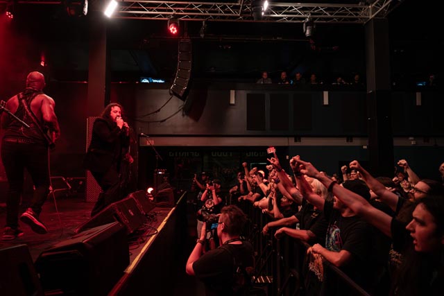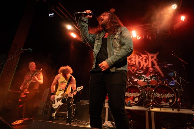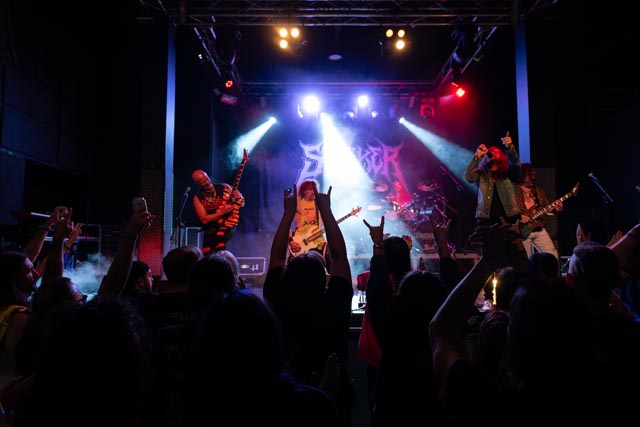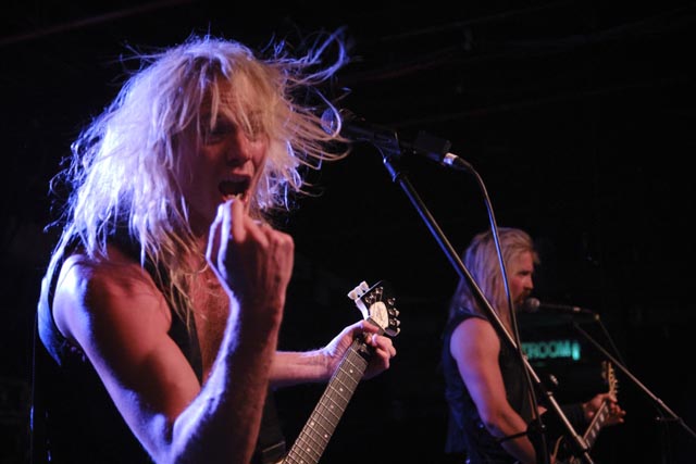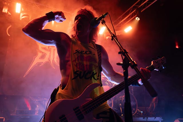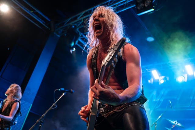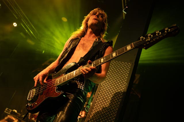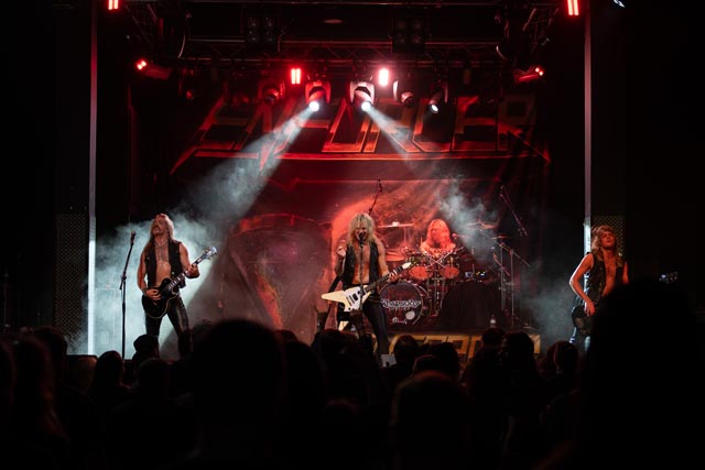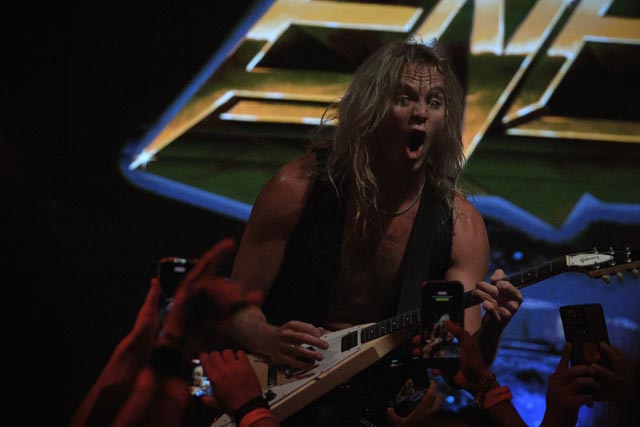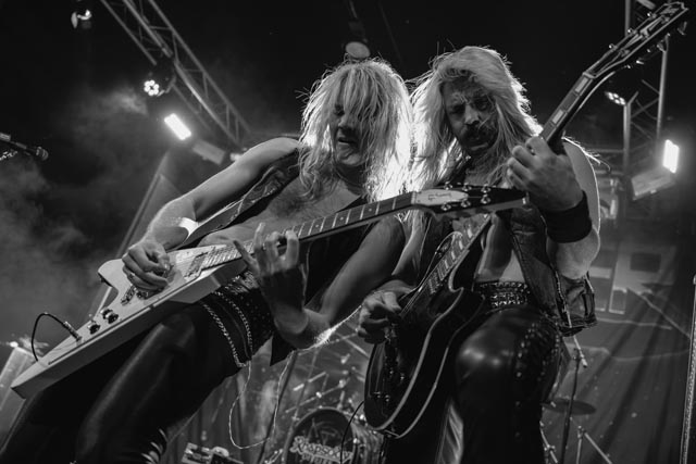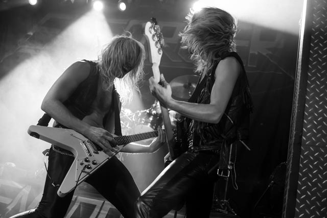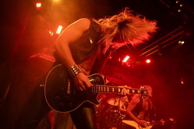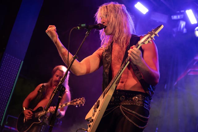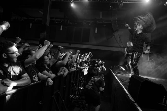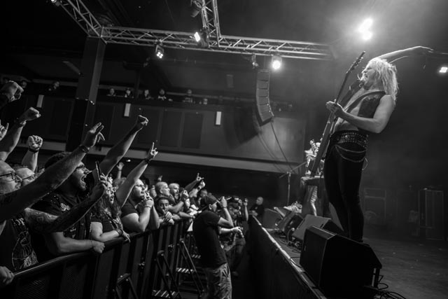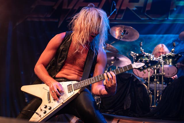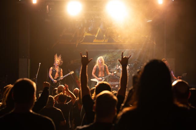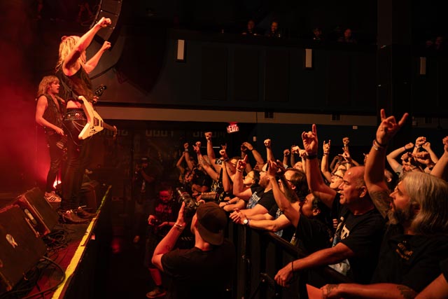 After Witherfall more than captivated Brooklyn with their Helstar-like expertise to briefly subdue the concert, Sweden’s Enforcer was about to distill the balance of the gig as the penultimate raiders of the night: bright, classy, restless, the exuberant mad-lads burst onto the stage and tore into Destroyer. Crushing our souls and breaking our necks, disguised as the integral connection between music and the gathering of an now-erupting audience – featuring the central eyewall of crowd surfing and slam-dancing at the event. Dressed in leather, one of the leaders of the New Wave of Traditional Heavy Metal, the two of the literal brothers in metal, guitarist and vocalist Olof Wikstrand, Jonas Wikstrand on the drums to unleash the inferno with guitarist Jonathan Nordwall and bassist/lone American band member, Garth Condit, the firey foursome went above and beyond deliver the goods for forty-eight unflinching minutes.