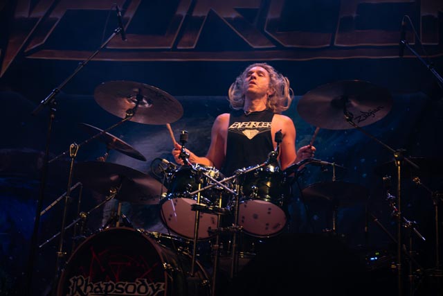 Based on the band’s revisionist, self-defined mission to crush our souls and break our necks with some true heavy metal style, a celebration of the genre they helped revive and nod to alongside their Canadian brethren in Striker – Enforcer makes metal for the diehards. Before the gloriously all-encompassing might of Rhapsody of Fire took the Brooklyn Monarch’s stage for the final incineration, the ethereal, four-sided affair sent electric chills down the collective spines one more time with Midnight Vice. Enforcer’s sound is as dangerous as it is unmistakable. A magma storm of twin leads, an ironbound lower edge, Rob Halford-style piercing vocals, and a ceaseless drive to their craft have made them one of the most genuine and heated bands to see live today. Watch out: Enforcer has you in their grasp!