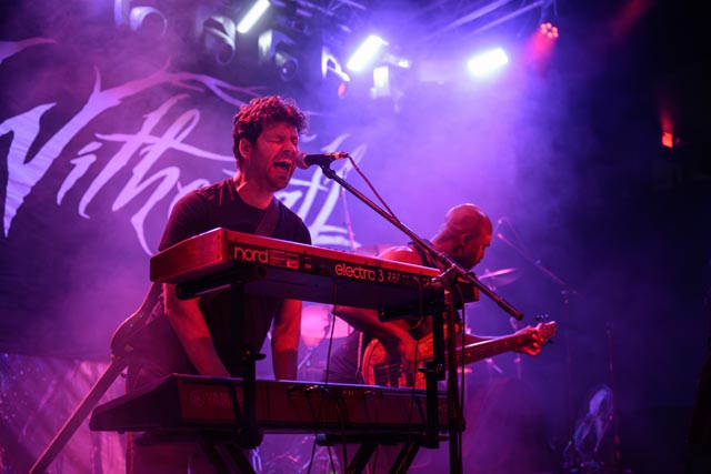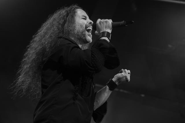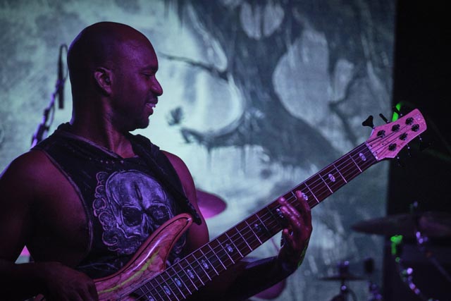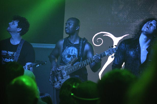 Joseph Michael, as much of an infernal martyr that he is to vocally bring his spectral Warrel Dane-influenced trills to the core of the band, even with his magnetic power, lost his articulation throughout Moment of Silence, offering glimpses into a shared sense of humor with the audience during Striker’s rollick, resulting in a hilarious payoff, showcasing camaraderie between bands. In addition to Joseph Michael blessing us with mystifying pipes, Witherfall features four other supreme professionals – Anthony Crawford keeping it locked in the bottom end with Chris Tsaganeas’ thunderous percussion and Gerry Hirshfeld stinging the electronic ivories while strumming alongside the unmistakable Jake Dreyer, who brought it all together in deadly phantom harmony. You can definitely notice the metallic side of prog in their sound—complete with respect to the greats like Devin Townsend and Dream Theater and clear, outrageous vocals from Joseph—but there’s an intense heaviness in the crunch factor of Jake’s riffs, as well as the benefit of not sounding overly grandiose.