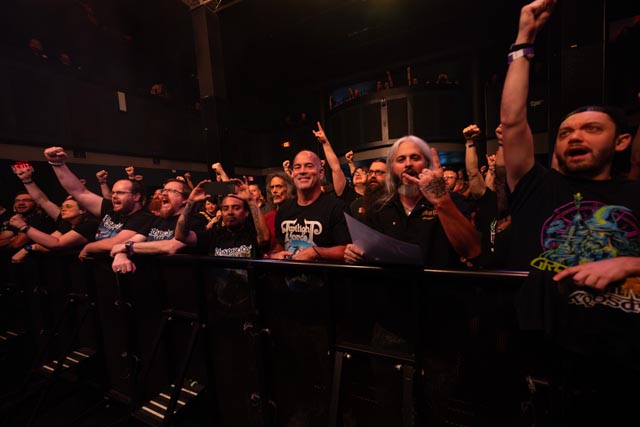 As someone who’s been there since Rhapsody (of Fire) took the power metal and live stages, like a mystical fire in the wake of their eternally hailed and great 1997 debut Legendary Tales via Alex Staropoli, fans have welcomed Alex reaching for new horizons with his most consistant lineup to date, Roberto De Micheli plucking the wires that vibrate with Alessandro Sala and Paolo Marchesich holding down the groove of bass and drum heroics, plus choir-like vocals from Giacomo Voli. Giacomo is a unique singer to provide an embarrassment of fresh, melodic, soaring metal riches happening in the midst of interacting with the crowd, by jumping into the pit to vocally engage with some of the moshketeers during Chains of Destiny, of course, but entered the cyclone a final time during A New Saga Begins as R.o.F. happen to be bestowing the first three encores unto Brooklyn. These masters of spirit and song initiated the final two-song ignition of a stacked spectacle of their American expedition with Land of Immortals and, of course, the title of the last song, Emerald Sword, and that meant a standalone stunt, where the stalwarts of this statewide quest engaged in a thematically fitting inflatable sword fight to disarm a historical night of metal, unity, and triumph. By the end of their fiery trials, I’m sure they almost felt the need to shout ‘bravo, bravo, another encore’ and see roses thrown towards the stage. Each song had its own distinct personality, although Rhapsody of Fire has created a unique identity that is often duplicated but never replicated by a few other bands in the realm of power metal.