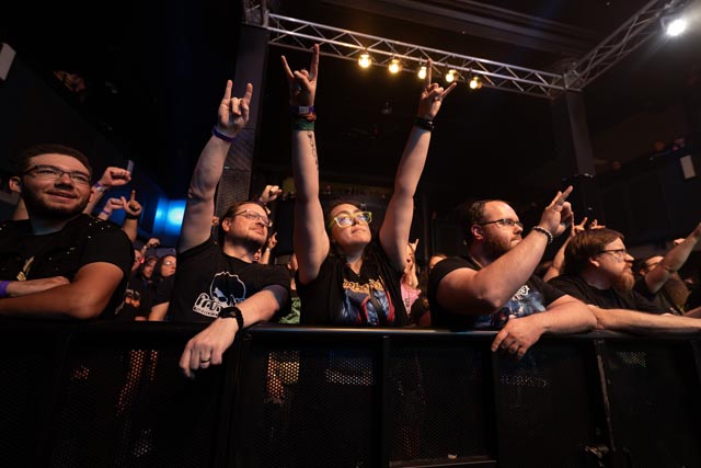 Sinister or icy, Witherfall’s style chooses both—they who conveyed some hazy power-prog with their half-hour-plus time on stage—as a shadow force of a quintet. How does one band find the soundness to stand out and engage with an otherwise uptempo bevy of fans of the more sing-along, anthemic style of metal? For this ominous quintet, it is simply letting the music take its course. Witherfall conveys musical strokes of astonishing dark art that rise when Witherfall and their spectators are together in a room. The songs on Witherfall’s set list revamped the vibe of an overall four-star, noisy end to a supersonic tour, but without sounding miserable. Witherfall threaded together five bone-chilling songs in the names of set-opener, They Will Let You Down, the gargantuan astral barrage of Insidious, and it was a comedy of errors as the tour wrap-up pranks continued for what can I can best describe as a Trailer Park Boys version of the last supper hosted by Striker’s Timothy Brown and Pete Klassen playing Uno while drinking wine as a few members of the crew dressed up in Buc-ee’s onesies during Moment of Silence.