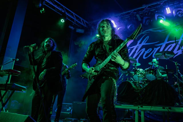 Like getting smacked in the cranium with a powered-up hockey puck, the only way to kick off this final gambit of the trek, an absolutely hammering half-hour-plus set from Canada’s speedy Striker, our undivided attention was fully locked in. They started with Best of the Best of the Best, pummeling the early throng of retroactive metal fans, where the band began their escapades by japing the crowd with an improvisational match of backyard wrestling for the title bout between some members of the road crew. And on the other end of the musical theatre spectrum, we had a blast hurtling along with seven all-out bangers like Blood Magic, Ready for Anything, and Former Glory. Slinging some of the era’s best time-honored music à la the New Wave of Traditional Heavy Metal, Striker delivered a world-class example of fast-paced canuk heaviness from Dan Cleary (vocals), the twin-axe attack of Timothy Brown and John Simon Fallon, bassist Pete Klassen, including their live drummer Gord Alexander to show Brooklyn that they are a Ford GT in a live setting. But Striker was just the beginning of an overarching night of sacred music. Throwing down one more reversal in Phoenix Lights, they went full speed ahead to sweep the swarm of golden-eared metal fans into the avalanche of Witherfall.