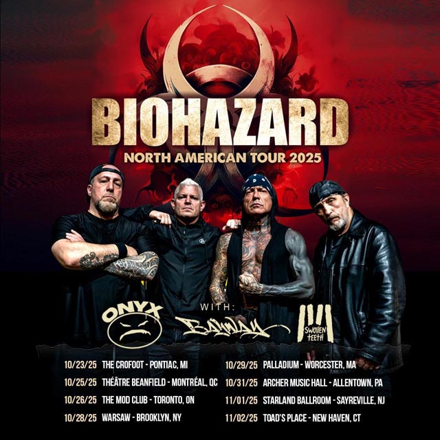 Biohazard have been dominating the tour circuit since their resurgence, following an eight-year absence from the live stage that began in 2015 and ended with their return at the 2023 edition of Milwaukee Metal Fest. Now, with a renewed mindset and a healthier lifestyle, the group has reunited its classic lineup consisting of Evan Seinfeld (vocals/bass), Billy Graziadei (vocals/guitar), Bobby Hambel (lead guitar), and Danny Schuler (drums).