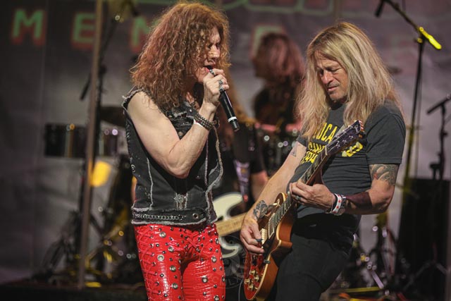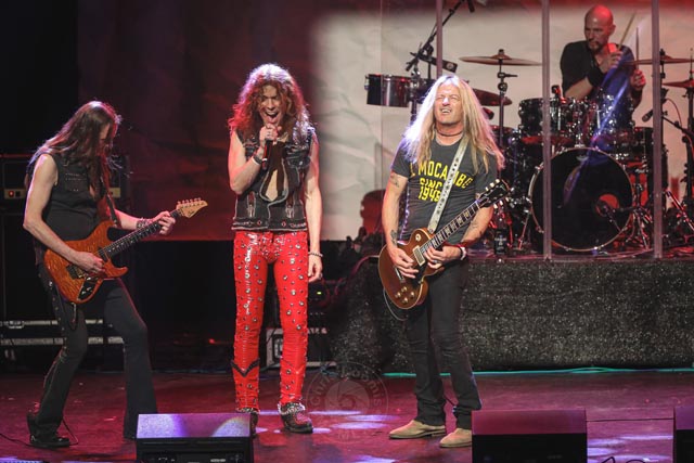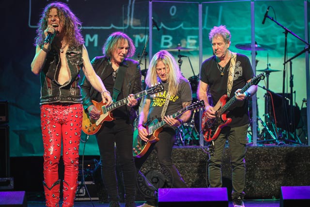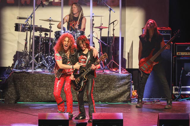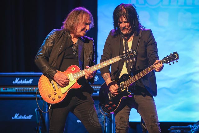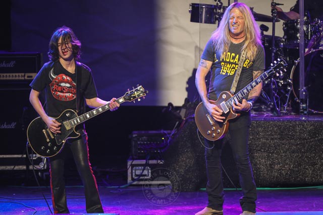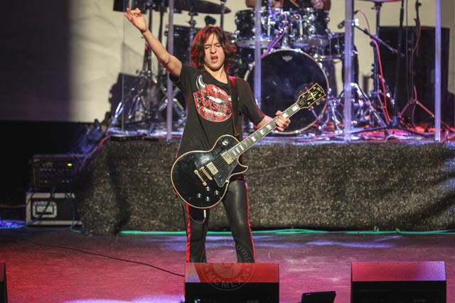 Some highlights included “Battle of the Snakes as current and former Whitesnake guitarists Reb Beach and Doug Aldrich traded licks on “Good Rockin’ Tonight”. 14-year-old guitarist Cole Buero ripped it up on “Paper Money before Brad Gillis from Night Ranger gave a master class on playing Gamma’s 1980 hit “Voyager”. A killer version of Edgar Winter Group’s instrumental “Frankenstein led by Katja Rieckermann (Rod Stewart Band) on Saxophone heated the Grand Ballroom.
