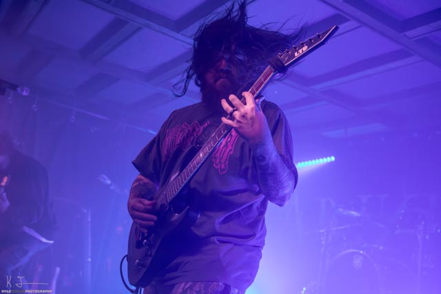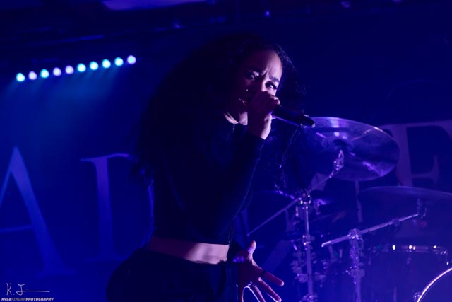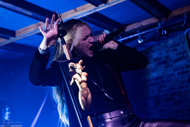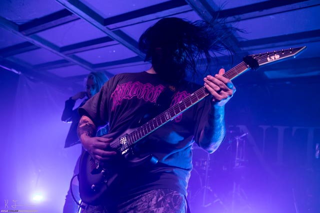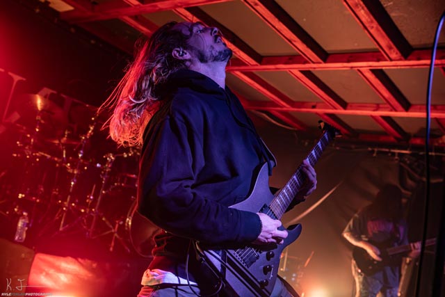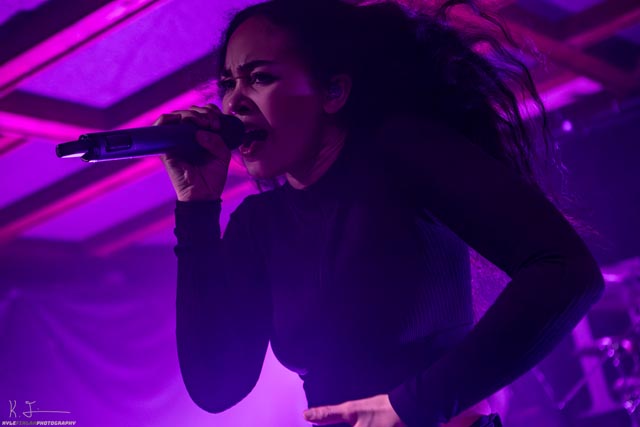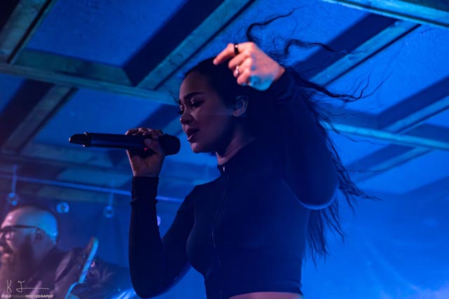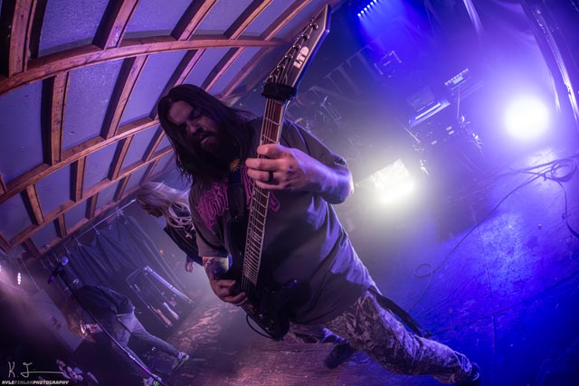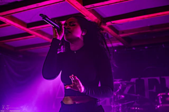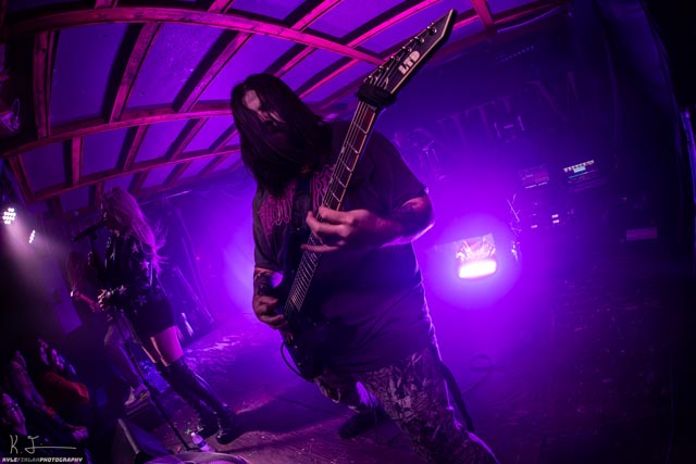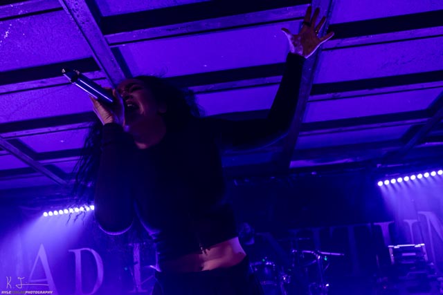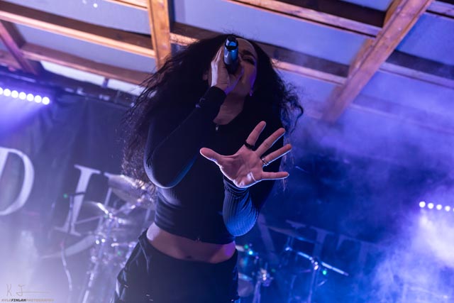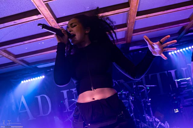 The upbeat feelings melted away (in a positive way) when my favorite sad-symphonic-power-metal band, Seven Spires, took the stage next. They started the set saying lead singer Adrienne had slightly lost her voice, so to help her out, they had recorded the vocals from the set the night before to accompany her. But, in her determined fashion, Adrienne still dominated the stage, belting out the high notes and screams almost like nothing was amiss. The band proceeded to play some of the heartbreaker tracks like set opener “Songs Upon Wine Stained Tongues” and “Love’s Souvenir”, the latter featured a portion with Ashleigh from Tulip doing operatic vox, which was a lovely addition. I found myself, as always, indulging in the intricate bass lines from Pete, along with the wild, speedy riffs and killer guitar solos from Jack. The blast beats and precise drum bits from Dylan just ice the cake, no matter how many times I witness this band. (23 times so far!)