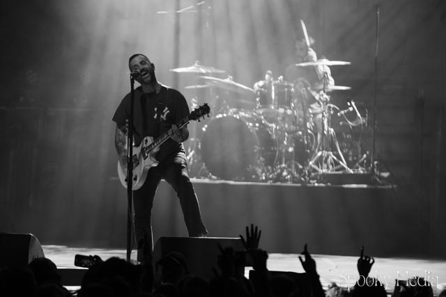 The lights went down a little after 9 PM to signal Bayside’s arrival. Though the band had used a similar opening sound bite at other venues throughout the tour, the phrase “This is the train to… Bayside… The next station is The Paramount in Huntington” had all fans feeling like they had stepped out of the venue and onto a train at the Long Island Railroad. Soon, Anthony Raneri (Vocals / Guitar), Jack O’Shea (Guitar), Nick Ghanbarian (Bass), and John “Beatz” Holohan (Drums) took their spots on stage as the crowd went nuts.