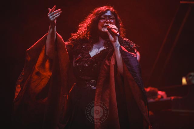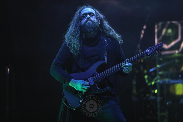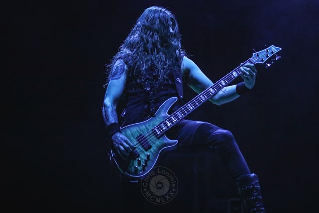 Moving on to a special Italian Symphonic death metal band, Fleshgod Apocalypse, the night was still young, and the crowd was ready for it. They recently released a great new album, Opera, and seeing some of these songs performed live was definitely a treat. The female operatic vocals from Veronica Bordacchini, Francesco Ferrini on the organ, who always has his back to the audience, and the wildly tough stage presence of the main vocalist, Francesco Paoli, set the mood perfectly. At the Wiltern venue, the sound can sometimes not be as clear as in a better equipped acoustic setting, but the chaos and carnage of Fleshgod Apocalypse reigned on. Once again, this band is very unique in its mixing of symphonic and death, becoming an alternative dynamic to that of Ne Obliviscaris. Even though they were all about promoting their new album on this tour, they still managed to play a song from quite a few other albums. This band is visually entertaining just in the stage presence of all parts together on stage. Being in the pit for this set would have been the best experience.