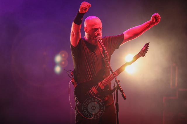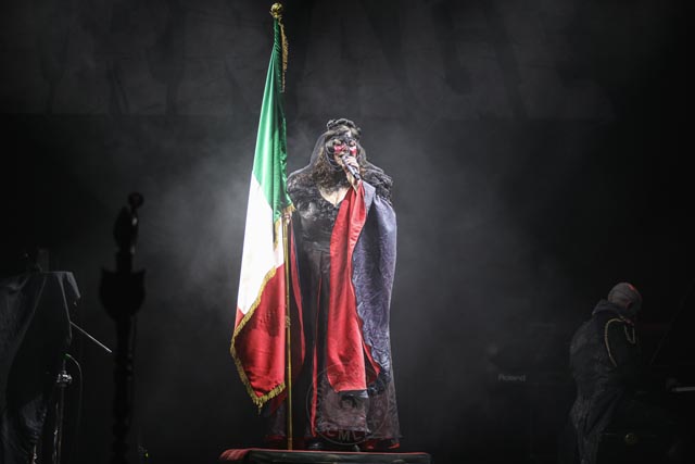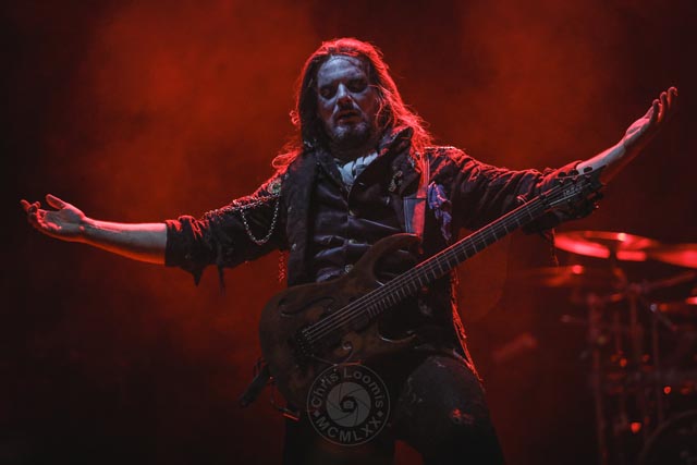 What can possibly take hold of the audience after Italian Symphonic death metal? England-based Cradle Of Filth can, of course. Dani Filth’s vocal range is absolutely wild, and absolutely perfect in pitch. They always put the drummer in a plexiglass box, the keyboards are always a plentiful addition, and this set on this evening was absolutely mind blowing in the best way. They were the first band to put up a giant backdrop with their logo and artwork on this occasion. There really is not much to say other than how much praise this band deserves for keeping it real on stage all these years.