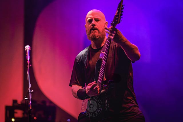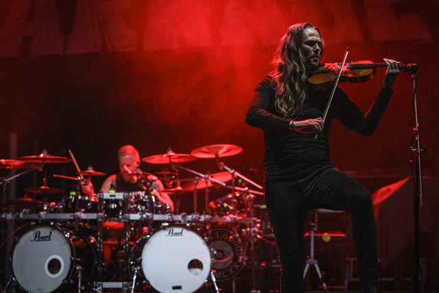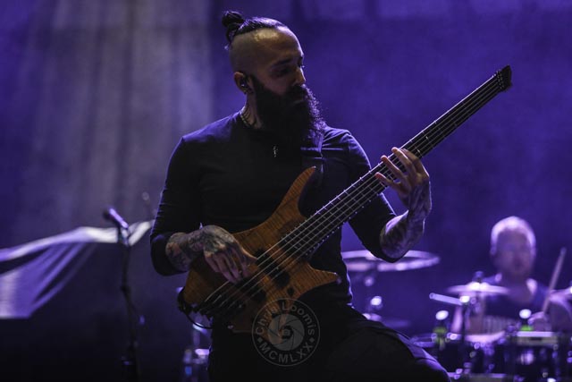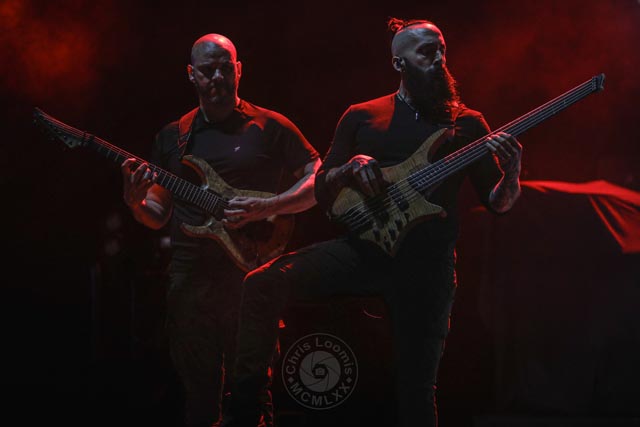 This lineup features a great mix of unique heavy metal bands, and Australian progressive extreme metal band Ne Obliviscaris started off the fab four of the night. The two male vocalists have such a unique dynamic from harsh to clean, and Tim Charles, with his violin, sounds absolutely beautiful together. The violin acts as a third voice and the structured alternating works well in the songs. Since 2023, James Dorton has been touring with Ne Obliviscaris as a fill in for Marc “Xenoyr” Campbell, who has recently left the band. While Xenoyr was magical to watch next to Tim Charles, the new official harsh vocalist, James Dorton, has the chops to nail it. The slightly concerning and slightly comical moments were when Dorton would walk off the stage when it wasn’t his turn to sing. It just broke up the dynamic with Charles, and made it a little awkward when Dorton would return to the stage to command the audience. Even if he were to stand up there like a statue, it would have set the scene better. Ne Obliviscaris is such a unique extreme progressive metal band that can go from heavy to serene seamlessly. It was a really great set despite only being about thirty-five minutes long. Despite a major vocalist lineup change, this band is still a joy to watch and hear.
