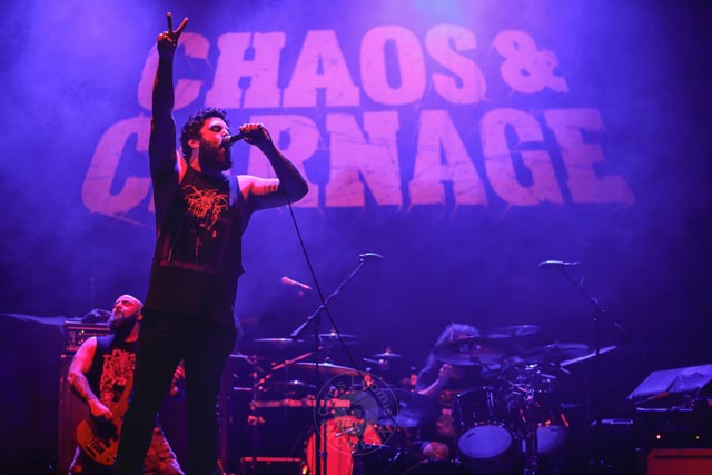 On this evening of the Chaos and Carnage Tour, they opened with three American bands, starting with Texas-originated brutal death and hard-core group Corpse Pile. Next up was Connecticut-based Death metal band Vomit Forth, and the third band was New York death metal, ironically called Undeath. Sometimes less bands is more on these kinds of adventures, but those in it for the long haul were glad they arrived early. As for the four bands on the main course, Dying Fetus headlined with support from Cradle Of Filth, Fleshgod Apocalypse, and Ne Obliviscaris.