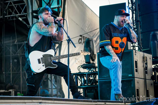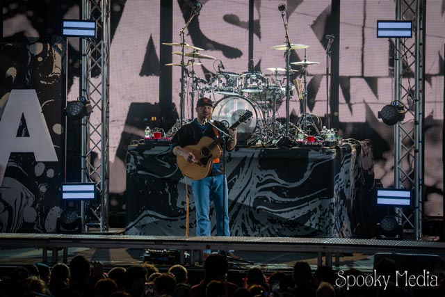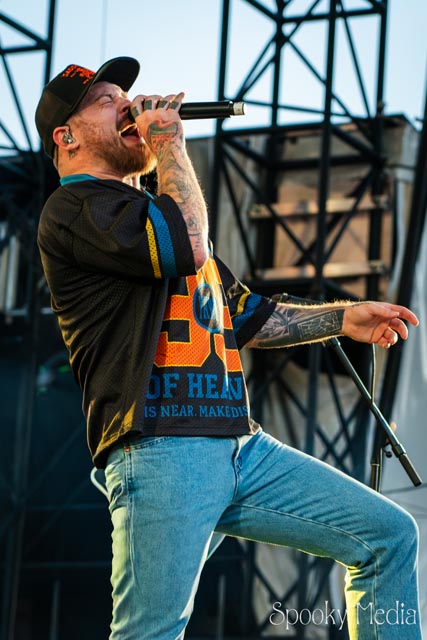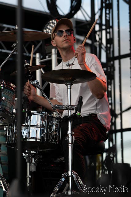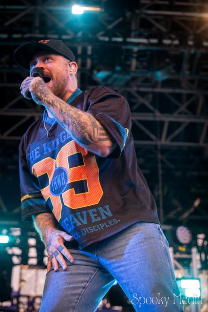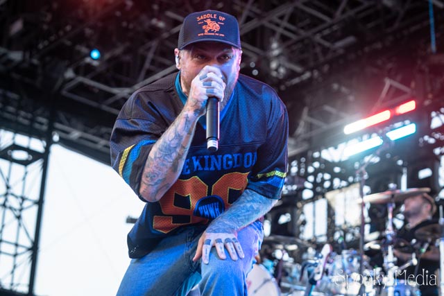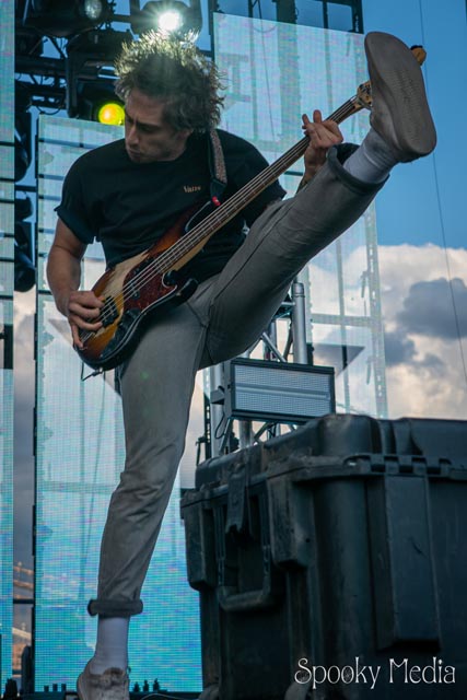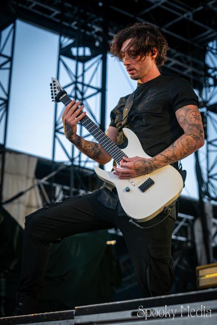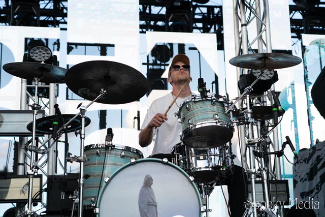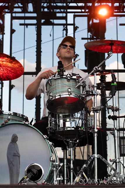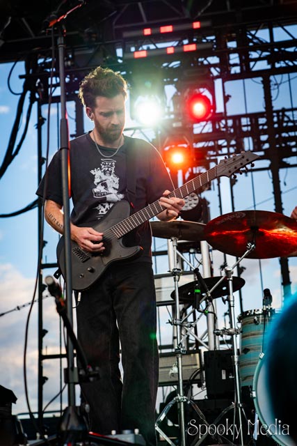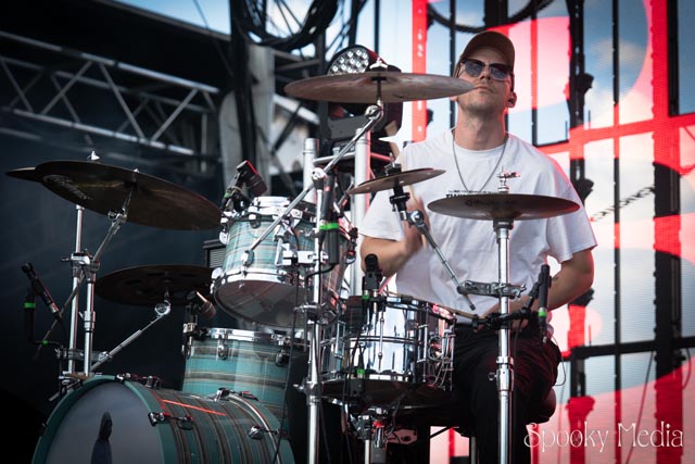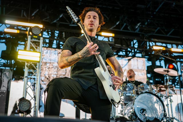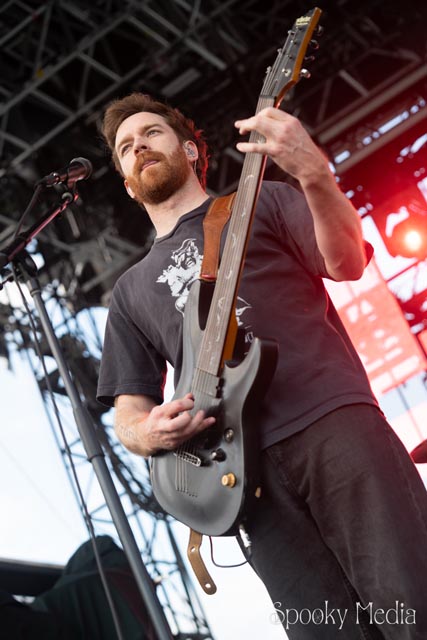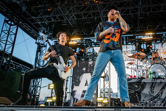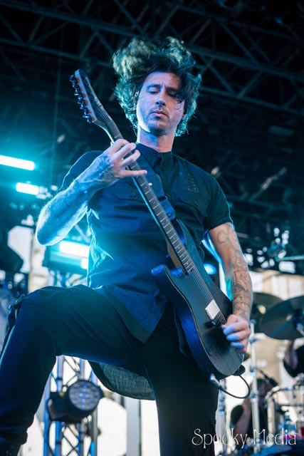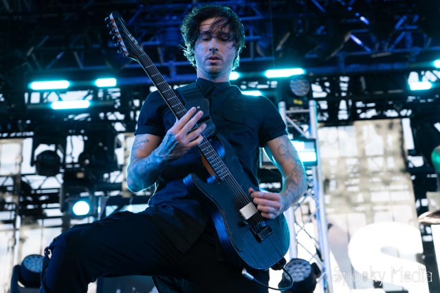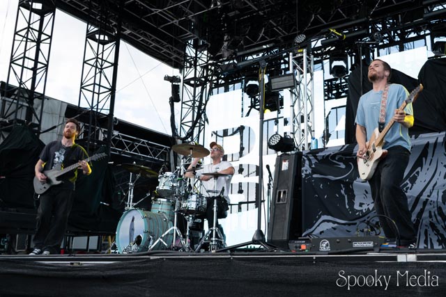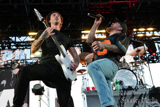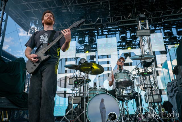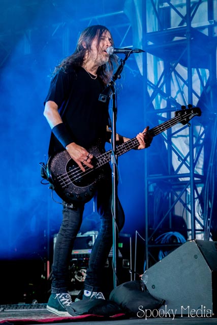 With the outdoor venue’s curfew time of 10:00 PM, the night was still young when Chevelle’s time to take the stage arrived at 8:20 PM. Brothers Pete Loeffler (Vocals) and Sam Loeffler (Drums), along with Kemble Walters (Bass), came out to put on a rock clinic. The group got fans singing right away with “Family System”. Fans started banging along, and the crowdsurfers began hailing rides to the front of the stage as the band blasted through their 2002 hit.