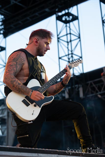 Up next, Asking Alexandria was ready to stir things up. Danny Worsnop (Vocals), Cameron Liddell (Guitar), Sam Bettley (Bass), and James Cassells (Drums) have collectively become one of the most formidable Metcal-Core bands in the industry. With nine studio albums under their belt and over fifteen years together, Asking Alexandria was the ideal addition to Chevelle’s tour.  Joining them is touring guitarist Paul Bartolome to round out the group. The rooftop was well packed when the band opened up with “Things Could Be Different”. “Dark Void” and “Down to Hell” soon followed before “Into The Fire” kicked things into another gear.