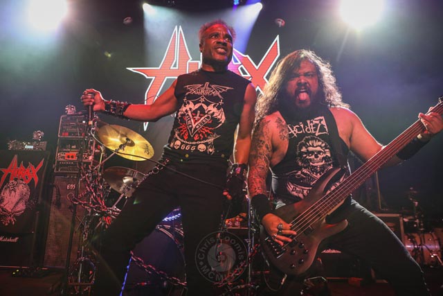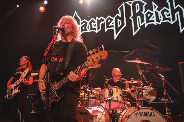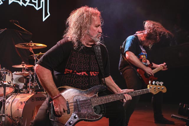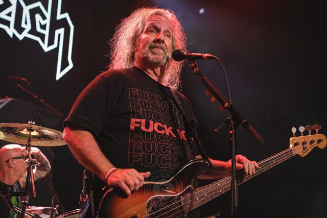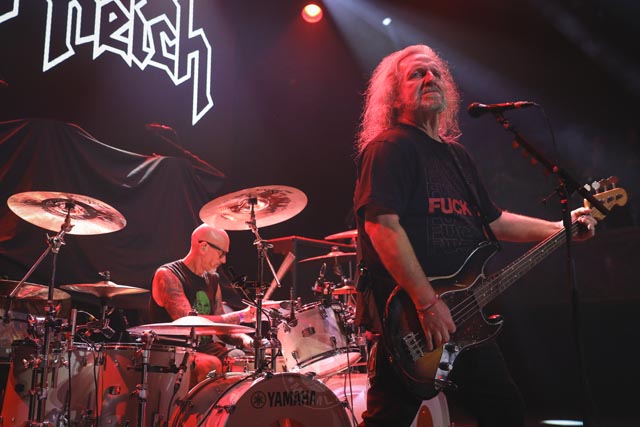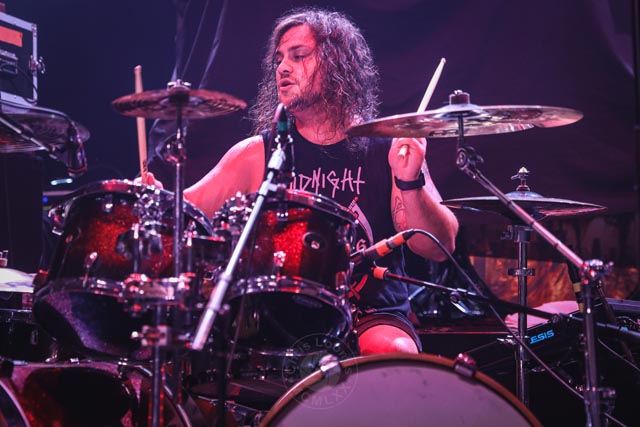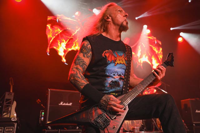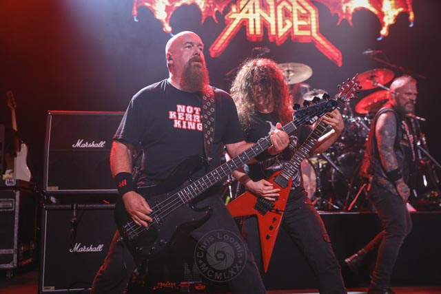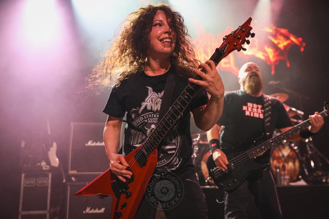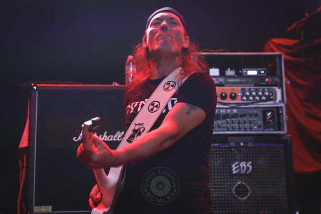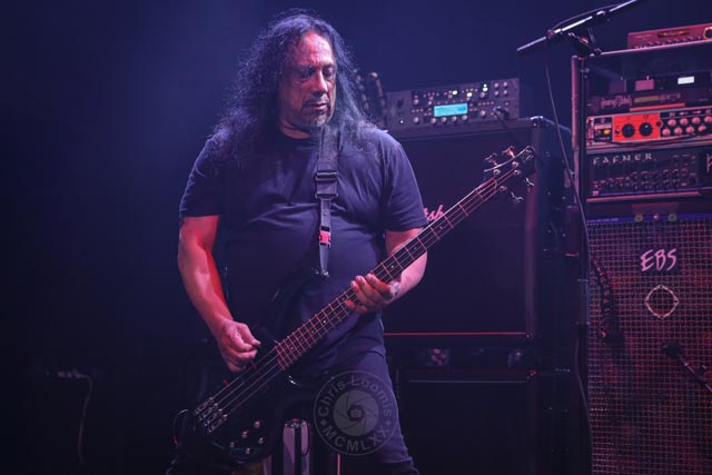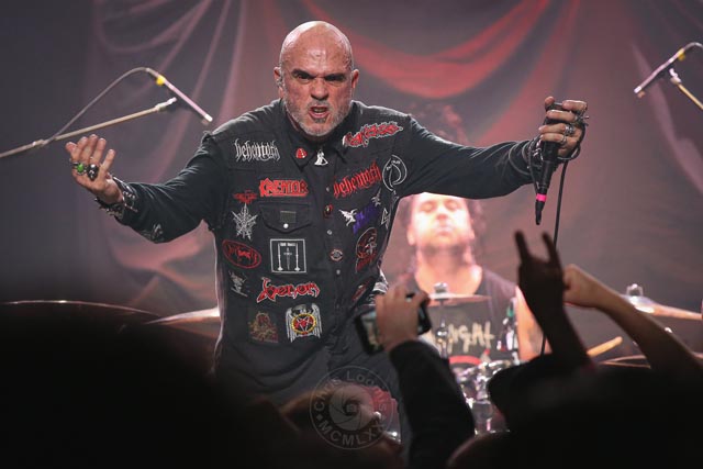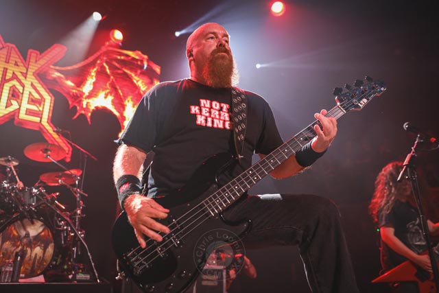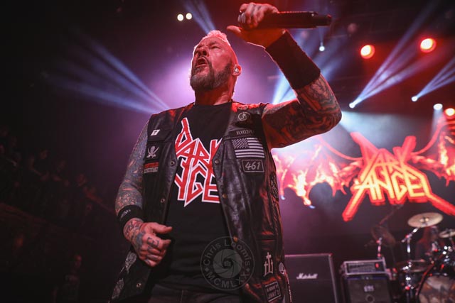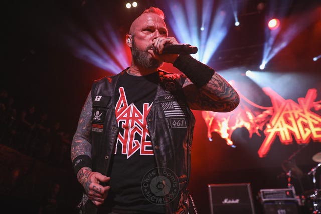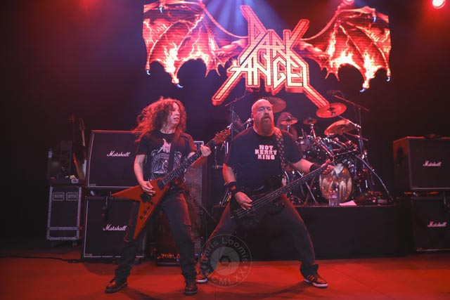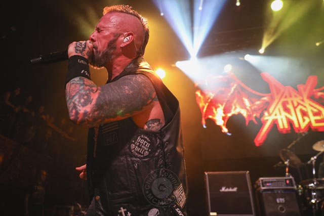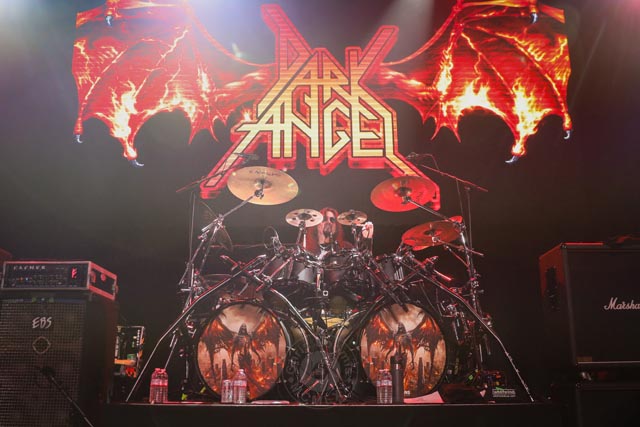The anticipation was high, the crowd had its second wind, and The Belasco was about to get hit with an Extinction Level Event. Dark Angel took the stage and opened with the title track from 1991’s Time Does Not Heal to kick off the last show of this tour. Gene Hoglan, sitting high on his drum riser, kicked out the blasts like a boss in sync with longtime bass player Mike Gonzalez. Hoglan’s wife, Laura Christine, plays guitar along with riff partner Eric Meyer, who has been with the band since 1984. And of course, on vocals, Ron Rinehart leads the band through each thrash classic.