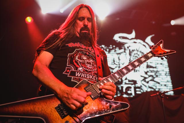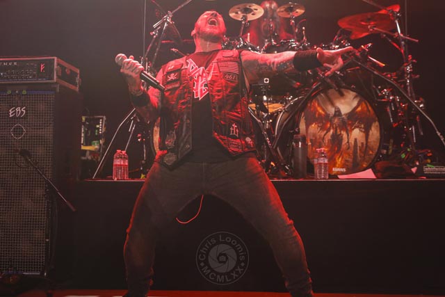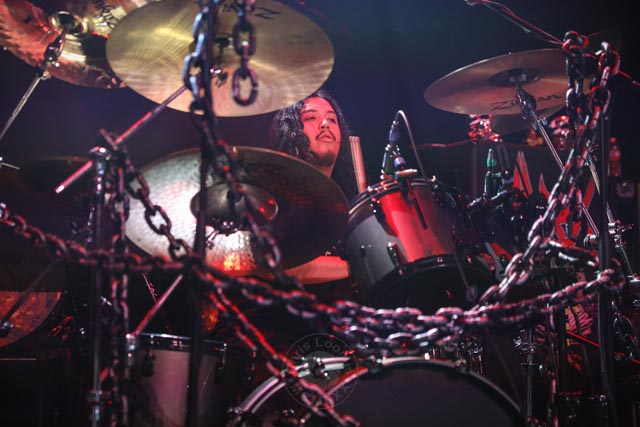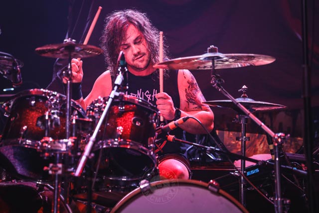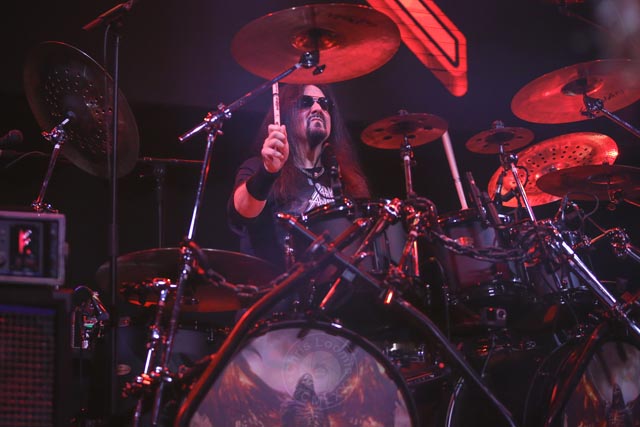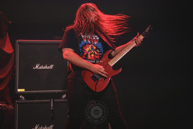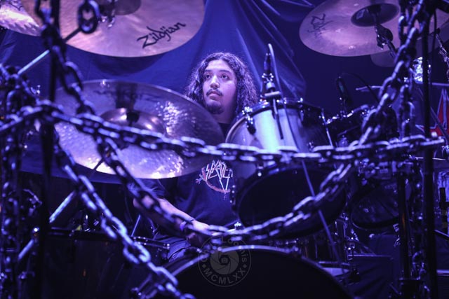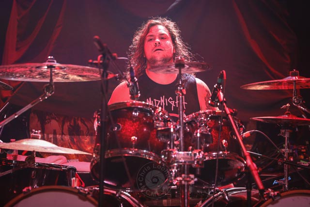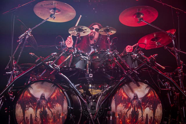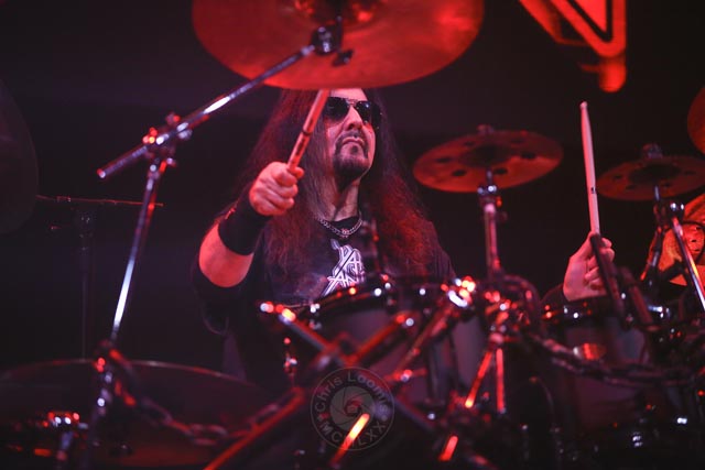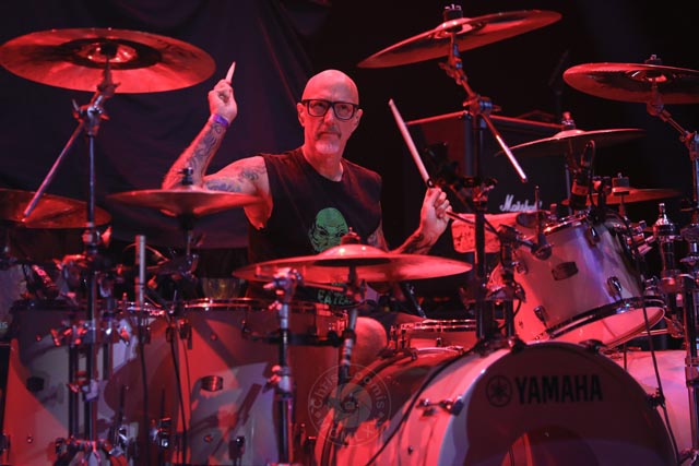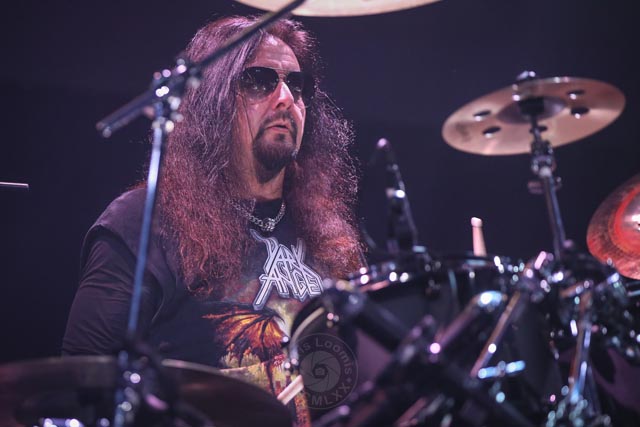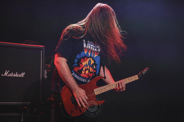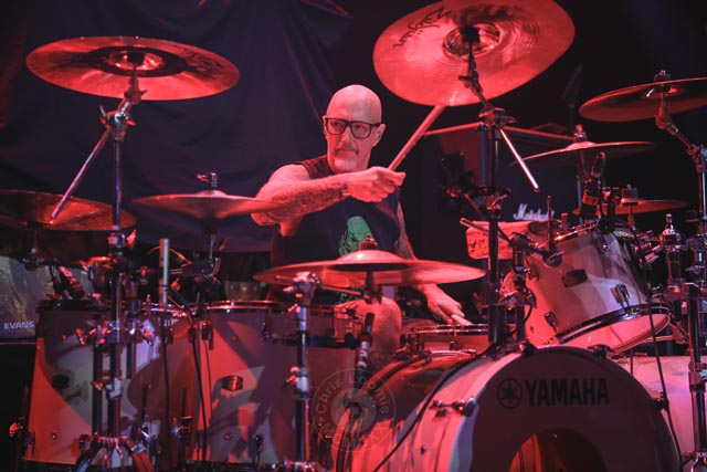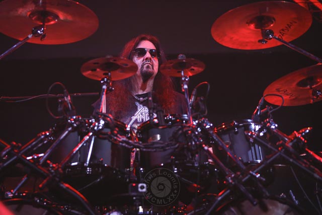 A large Dark Angel logo was the backdrop to the stage, and the crowd was revved up and super active with the mosh pits and crowd surfing. The band played four songs off the new album, “Extinction Level Event”, “Apex Predator”, “Sea of Heads” and “Woke Up to Blood” – all sounding exceptionally heavy and more aggressive live and Rinehart even went out into the crowd, even upstairs on the balcony to get up close and personal with the fans for “Woke Up to Blood. Hoglan is the star of the band, as his drumming is legendary and seems effortless. Dark Angel, Testament, Death, Strapping Young Lad, Fear Factory, Dethklok, and many more. Hoglan is a legend.