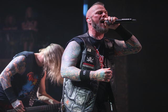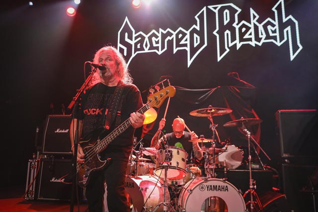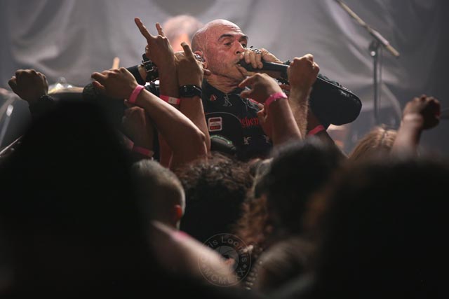 Barely 8:30 pm and four bands have already destroyed Los Angeles, the underrated but insanely intense Sacred Reich hit the stage and got things going fast and furious with “American Way,” with Metallica’s Robert Trujillo watching the show side stage. Vocalist/bass player Phil Rind and lead guitarist Wiley Arnett remain from the origins of the band, with former Machine Head drummer Dave McClain making his second stint in the band and the youngster Joey Radziwill on second guitar. These guys are super tight and remain such a killer live band. “Independent” and “Ignorance” were played early in the set as Rind addressed the crowd in between songs with some wisdom on the current state of the World.