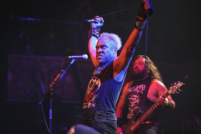 No joke, this was an old-school thrash attack. Up next was Bay Area blast masters Vio-lence. Yes, vocalist Sean Killian is the only original member, but with Ira Black and Claudeous Creamer on guitars, Jeff Salgado on bass, and Nick Souza (yes, Zetro’s – former Exodus – son) on drums, these guys kick-ass like nobody’s business. Opening with “Eternal Nightmare” and closing with “World in a World”, HOLY SHIT, this is the next best thing to a SLAYER show.