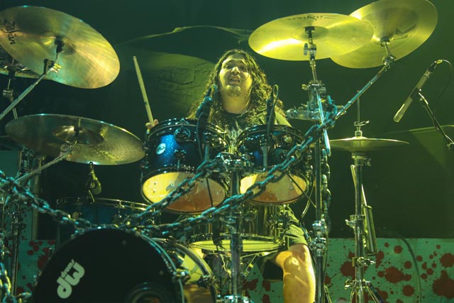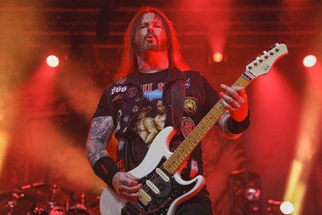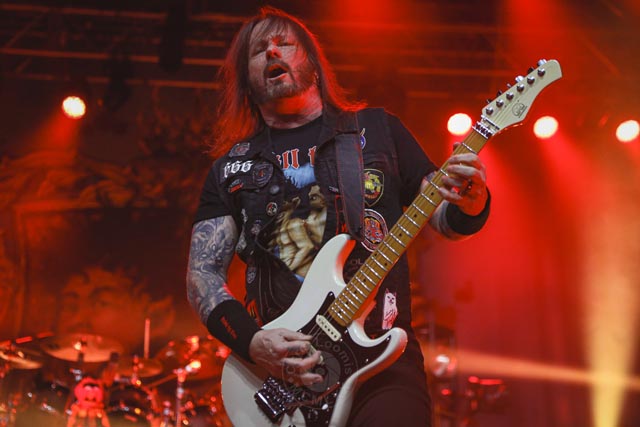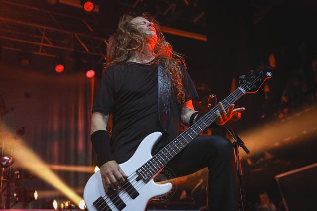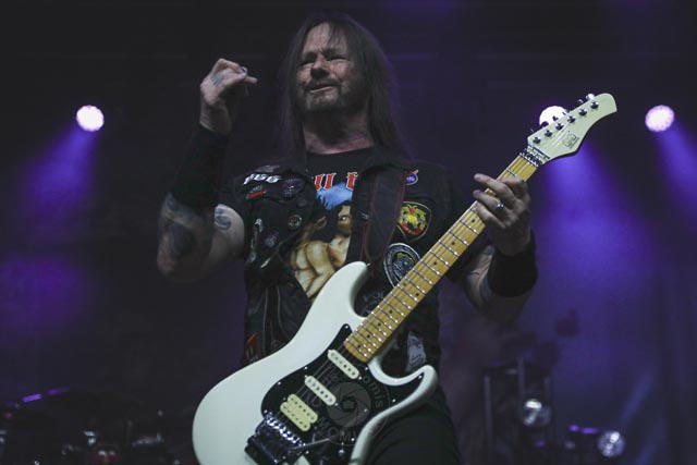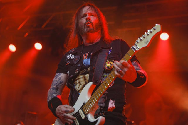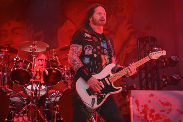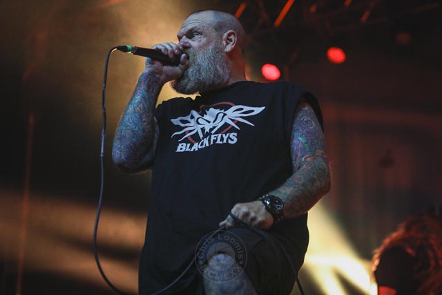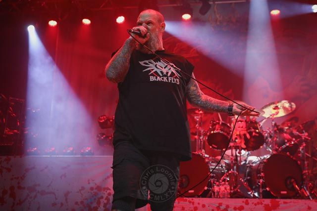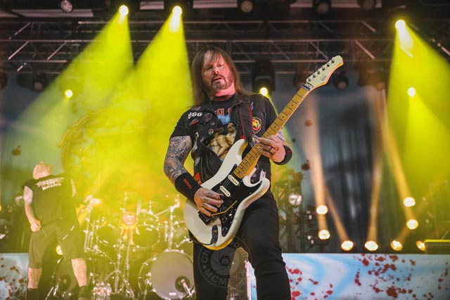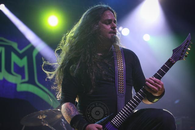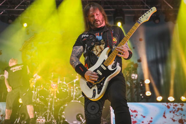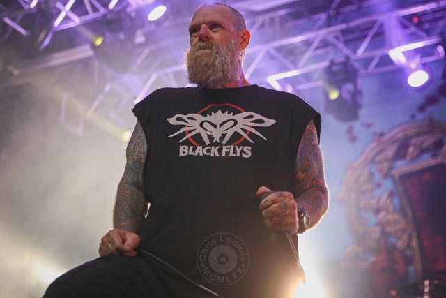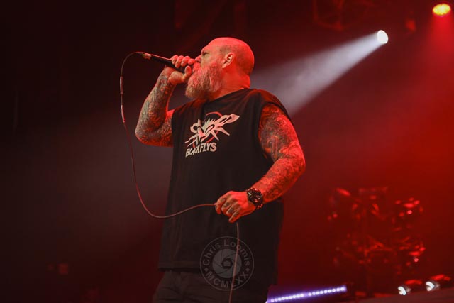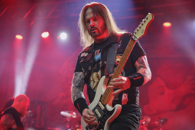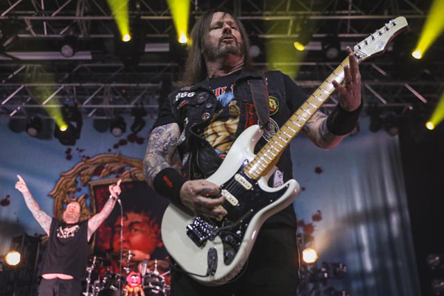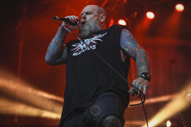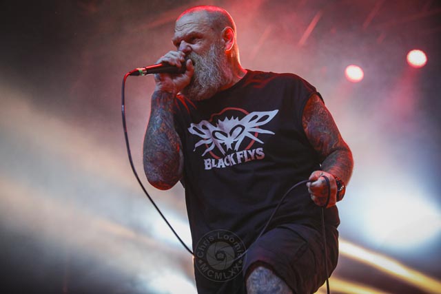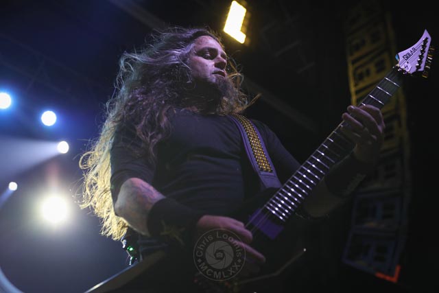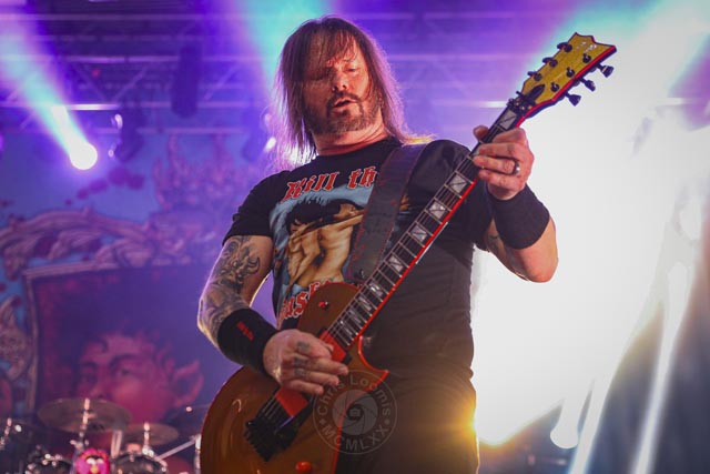 Things got crazier and rowdier all through Death Angel’s set as they opened the show with two thrashing classics off the Ultra-Violence record, “Evil Priest” and “Voracious Souls.” Rob Cavestany and Ted Aguilar ripped some serious thrash riffs while Damien Sisson and Will Carroll on bass and drums, respectively, provide a solid foundation for the Death Angel thumping gallop. And, of course, Osegueda’s vocals are top-notch, with his voice as powerful as ever. He also likes to talk with the crowd in between songs and always thanks everyone for their support with sincerity, stating “they” (Death Angel) would not be onstage without the fans. The band ended their set with the hard-hitting “Thrown to the Wolves” from 2004’s The Art of Dying album. While the fans were bummed Death Angel’s set was over, the security in the pit area was thankful as they were super busy fielding crowd surfers the entire set.
