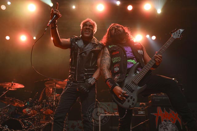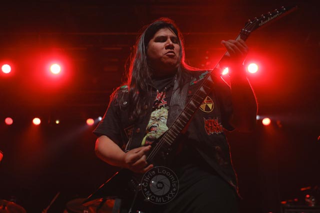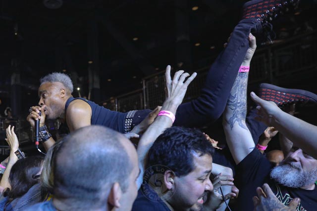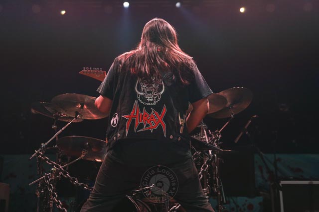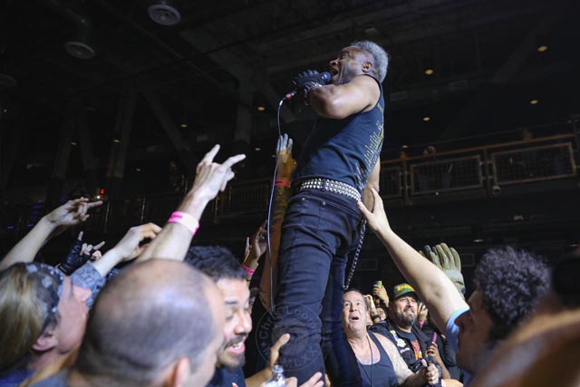 Long time SoCal thrash maestros, Hirax were up next, playing somewhat of a hometown show as they are from up the road from Anaheim in Cypress. Hirax has been throwing down since 1984, and frontman Katon W. De Pena is a true heavy metal warrior. The crowd surfing and mosh pit picked up right where they left off with Nukem only bigger and crazier. The band hit hard with “Black Smoke,” “Drill Into the Brain,” and Bombs of Death and De Pena dived into the crowd at least twice during their set, continuing to sing while being surfed around by the crowd. Hirax elevated the intensity inside the venue exponentially and proved they truly were a match made in hell to be part of this thrash celebration.