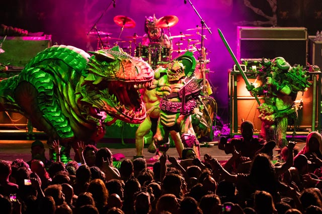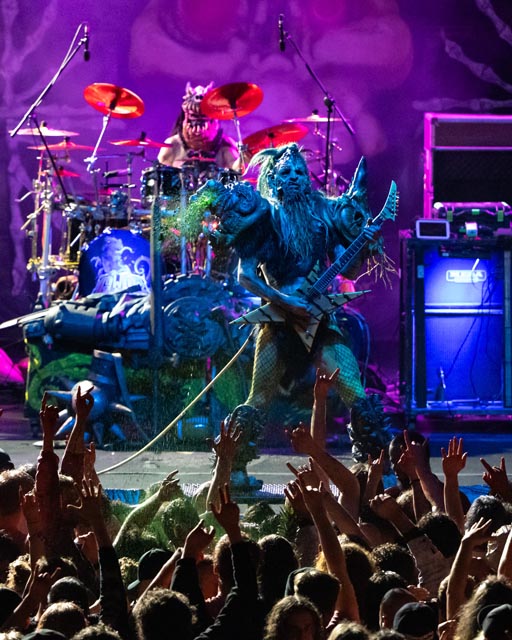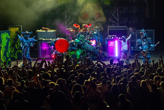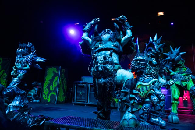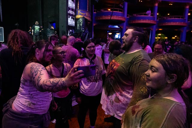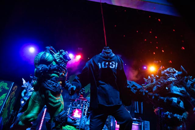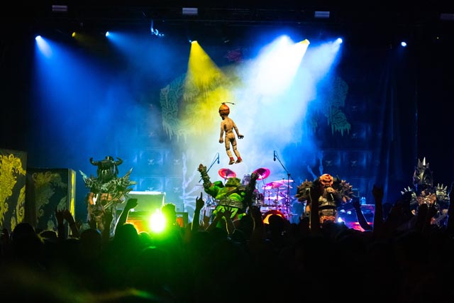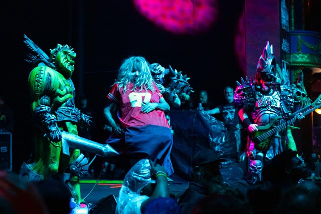 Meanwhile, upstairs at the Sumerian stage, a slew of legacy acts held their own. Exhorder, Frozen Soul, and Sacred Reich reminded fans why they’ve lasted decades, with a steady showing of fans and mosh pits that were ready to throw down in an instant. GWAR closed out the fest in classic fashion—with blood, absurd theatrics, and even a Taylor Swift dissection. Celebrating 40 years, the well-loved extraterrestrials brought out throwbacks like Gor-Gor along with new characters like Elon Musk. By the end of the set, fans were drenched in blood and vomit, and smiles filled the room.