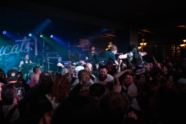 The Copycat room remained a hotbed for intensity. Toxic Holocaust and Deceased drew capacity crowds with feral energy and old-school thrash spirit, while Gates to Hell, The Acacia Strain, Full of Hell, and End brought down the house with heavy, punishing sets that pushed the crowd to its limit with fans flying through the air surfing and stage diving all day.