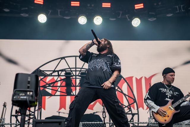 The heavens opened again just in time for Slaughter to Prevail, who didn’t just play through the storm—they harnessed it. Their set was one of the most brutal of the weekend. The wall of death they triggered might be their biggest yet on U.S. soil. Even SiriusXM’s Jose Mangin, deep in the pit, had to crowd surf to escape the chaos. After the set, frontman Alex Terrible greeted fans for an impromptu meet-and-greet near a life-sized grizzly bear display. It was absurd—and amazing.