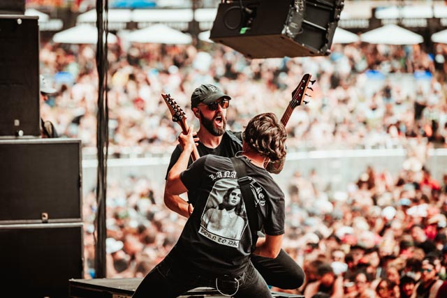 Friday also gave fans a rare reunion moment with Michigan’s Chiodos, who hadn’t played in nearly a decade but hit the stage like they’d never left. Their set was tight, intense, and a reminder of just how much the scene had missed them. On the heavier side, Knocked Loose pushed the crowd to its absolute physical limits, igniting a wall of death that devoured the pit.
