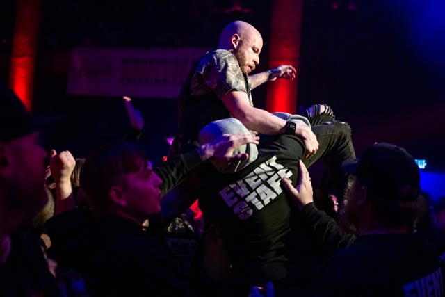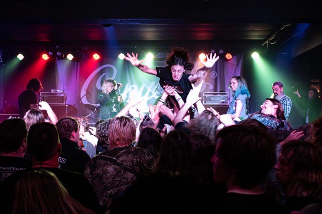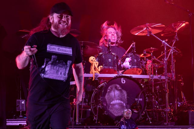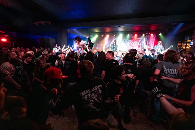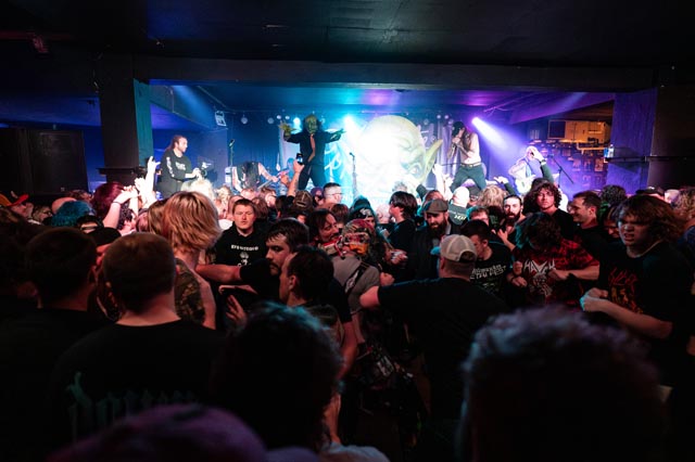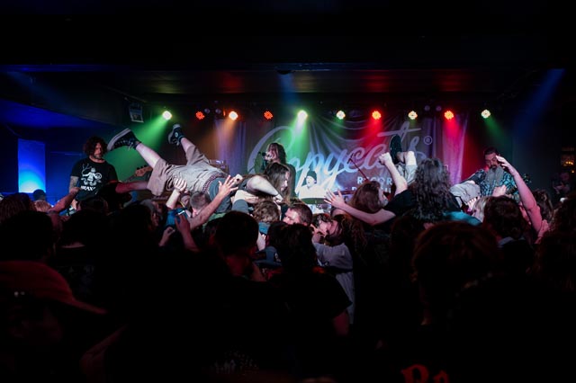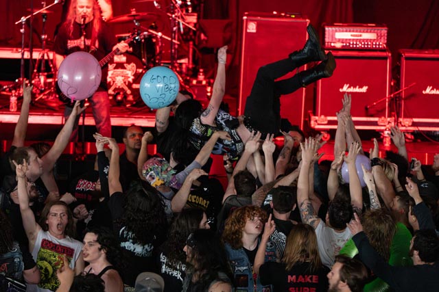 The Copycat room remained one of the most consistent sources of chaos, with sets from Eyehategod, Ov Sulfur, and Snafu all drawing large, active crowds. Stage diving and active mosh pits were common throughout the day…if you could get into the bar to see them! Brat and Nekrogoblikon brought some humor to this stage with their characteristic comedy metal shows.
