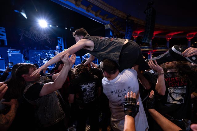 Milwaukee Metal Fest returned for its second day on Saturday, May 17, 2025, with larger crowds, tighter sets, and nonstop energy across The Rave’s three stages. While attendance was noticeably higher than Day 1, the venue never felt overcrowded, and festival-goers were able to navigate between sets, food trucks, and merch tables without much trouble. The atmosphere remained energetic but organized.