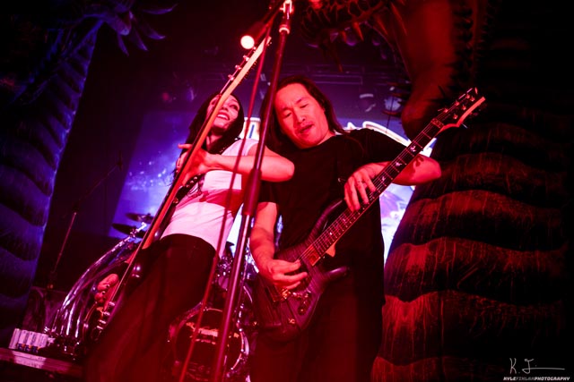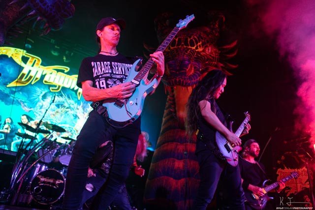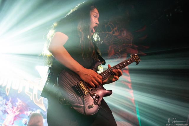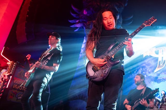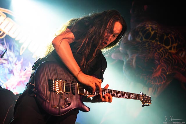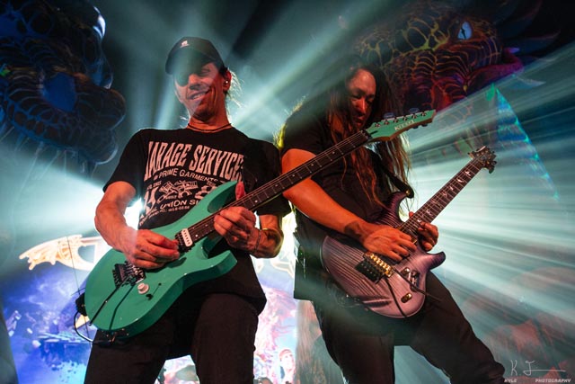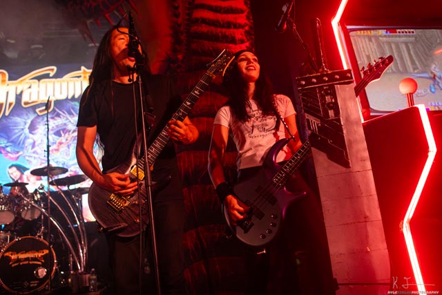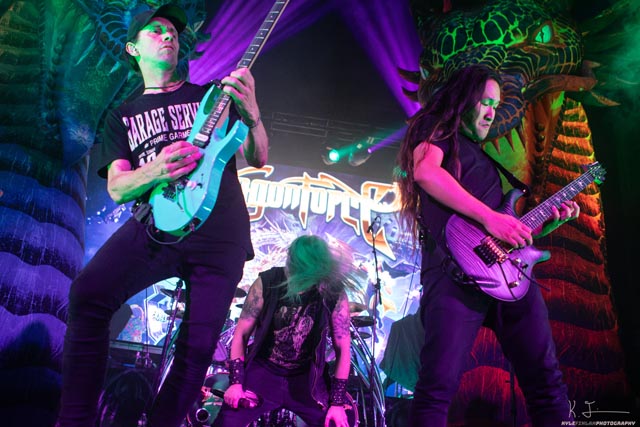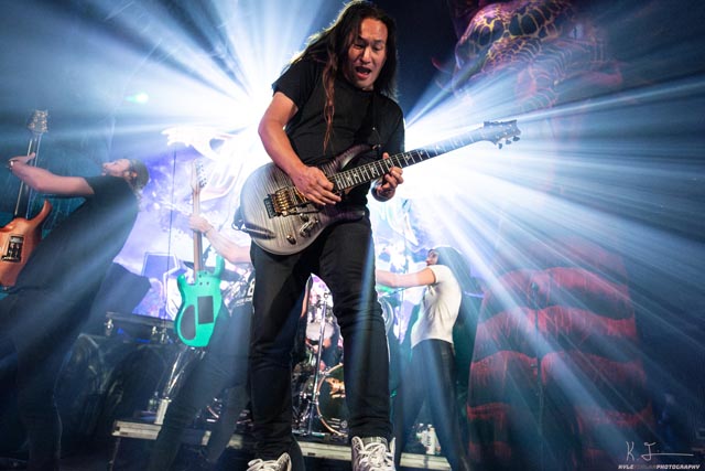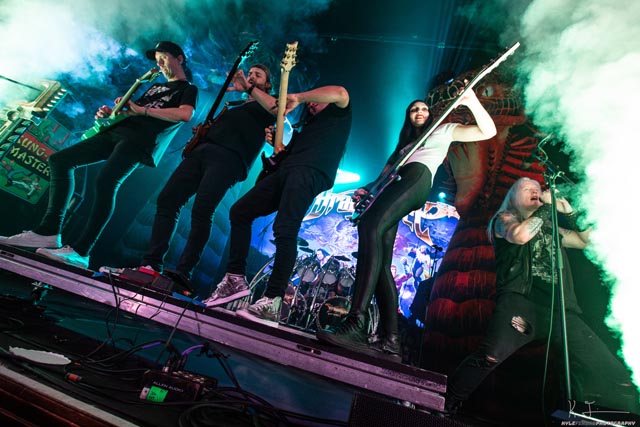 Dragonforce opened the night with their massive stage show. They had their giant arcade cabinets on either side of the stage with screen visuals that change with every song. They also added two giant inflatable dragons to the stage setup, which truly puts their namesake in the forefront. One would think having oversized props like that would be distracting to the performance itself, they instead just add to their show. The band themselves command the stage with their trademark dueling guitar solos and playful personalities that shine brightly amidst the vibrant lights. Their 25 plus year legacy captivates the audience as well. The crowd simply adored every song and many fans were singing along, fists clenched in the air and smiling, and some were even crowd surfing. I’ve seen Dragonforce 7 times now and they never disappoint. Come for the speedy solos, stay for the infectious visual overload.