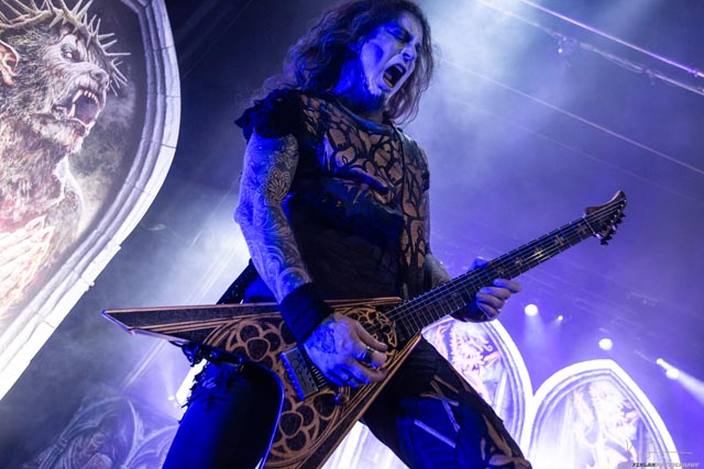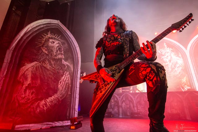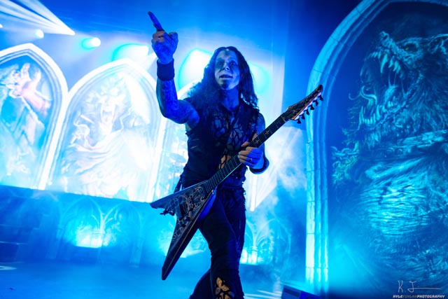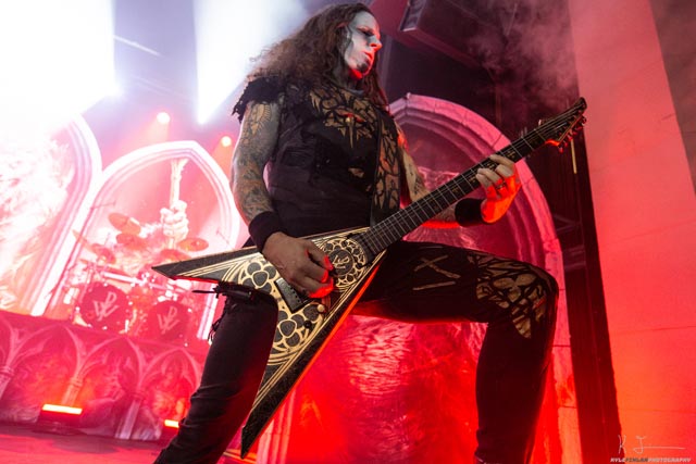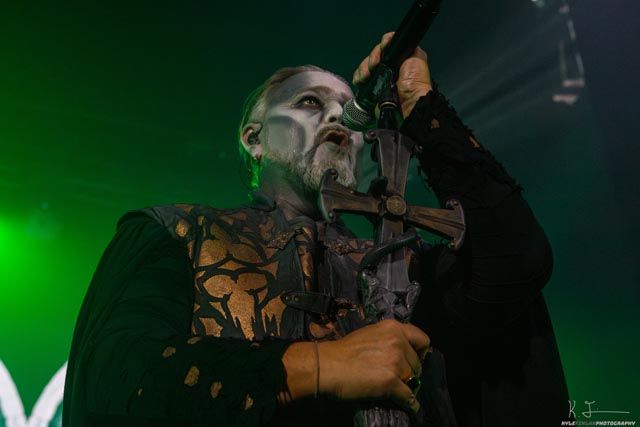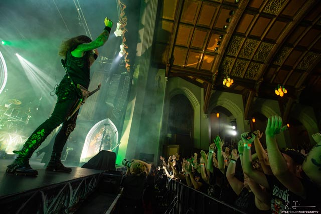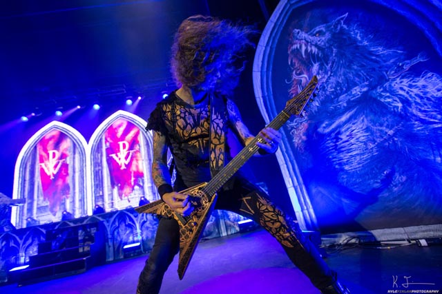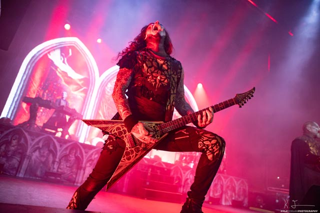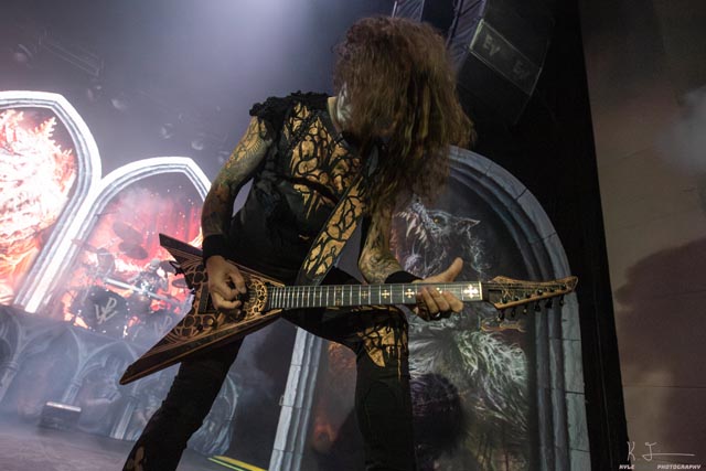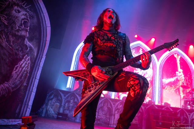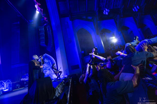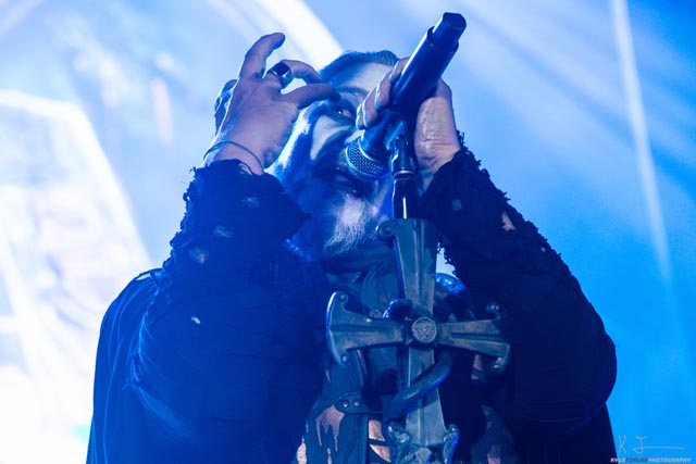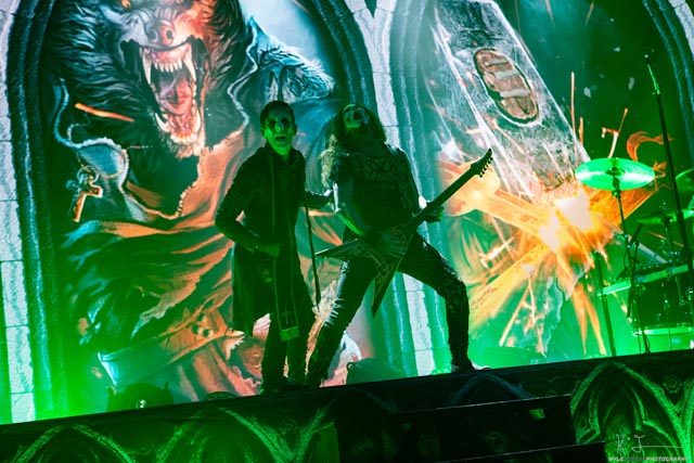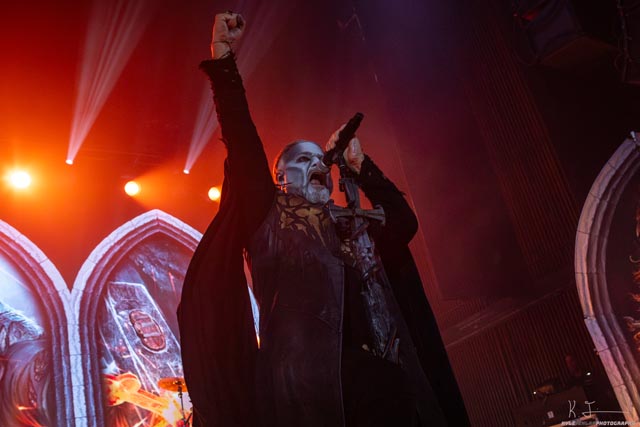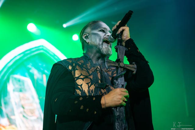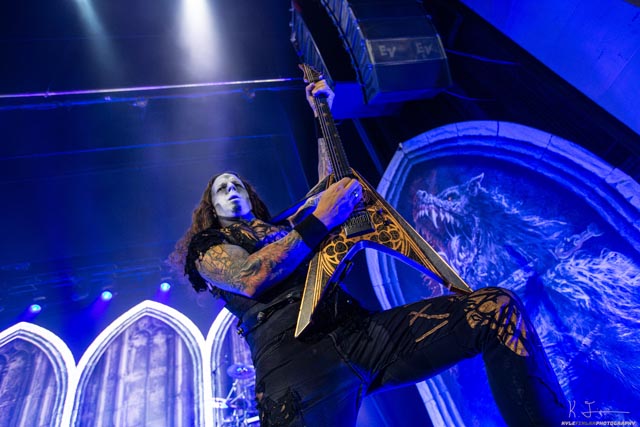 After quite a bit of prop takedown time, another setup took its place. Powerwolf took the stage and their setup revolves around Catholic/gothic church aesthetic. It was right at home at tonight’s venue, The Masonic Temple, which has gothic revival architecture. So the prop decor resembling ornate arches looked almost made for this stage. The 5 man band themselves also take on the theme with robes and clothing with cathedral imagery on them, plus ashy corpse paint. The set began with a blessing of sorts, including an incense ‘cleansing’ (like when mass begins at a church) which led into an almost too obvious song to follow “Incense and Iron”. It was easy to get caught into the show after that. Powerwolf has some of the catchiest melodies in music and it set the crowd ablaze for every song. Not to mention, singer Attila Dorn has so much charisma both while he’s singing and in his way of commanding the audience. The amount of crowd involvement at this show was a pivotal part of why it was so enjoyable. They had us singing some of the big hook melodies of songs like “Armata Strigoi” and crowd favorite “Demons are a Girl’s Best Friend”, they got the crowd jumping in unison for other songs, and even split the audience in multiple spots to see who can sing the loudest. If you like being part of the show, Powerwolf gladly invites you to join their Heavy Metal Army.