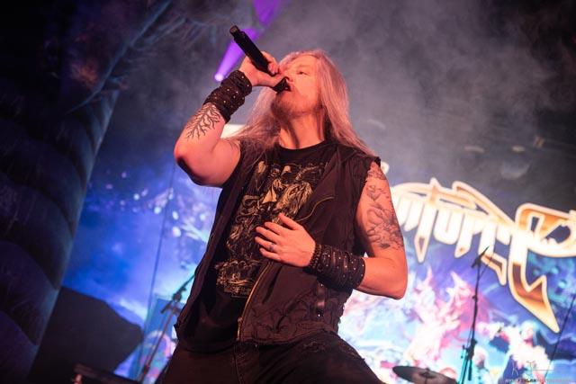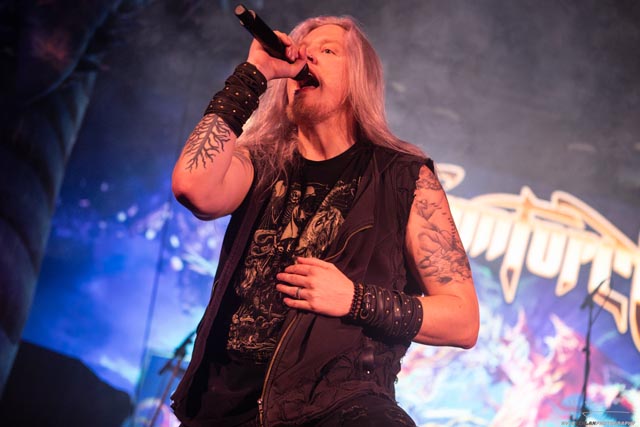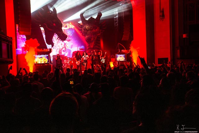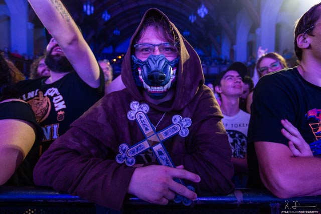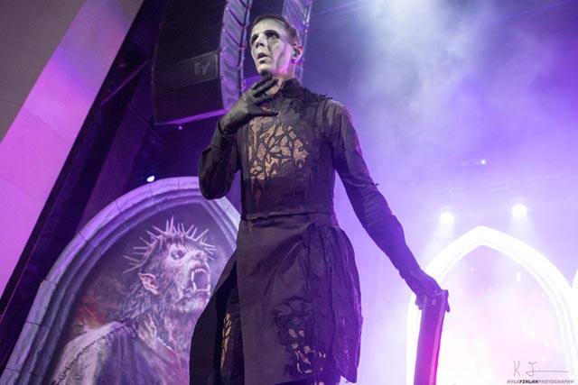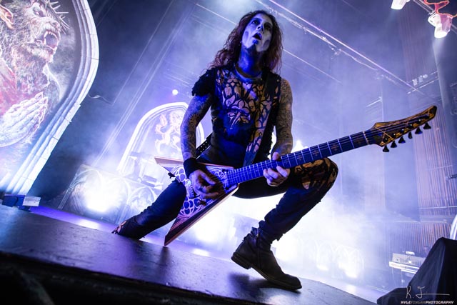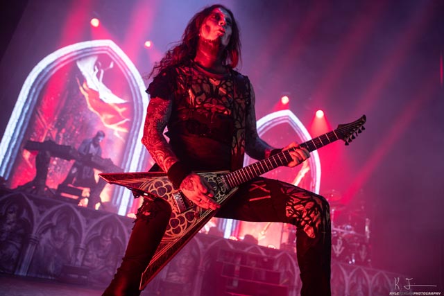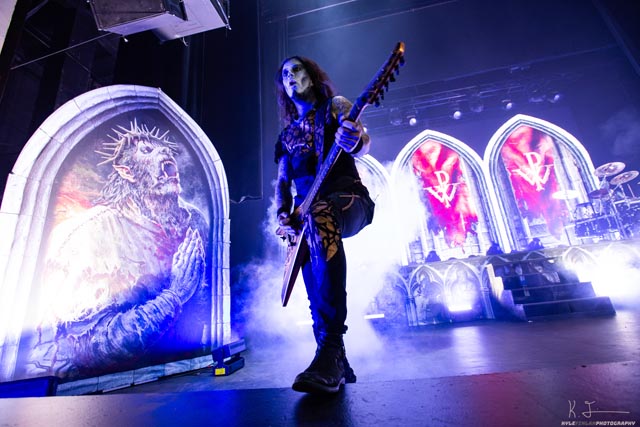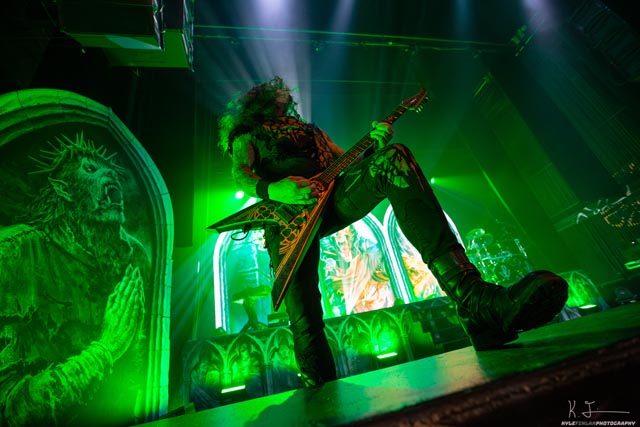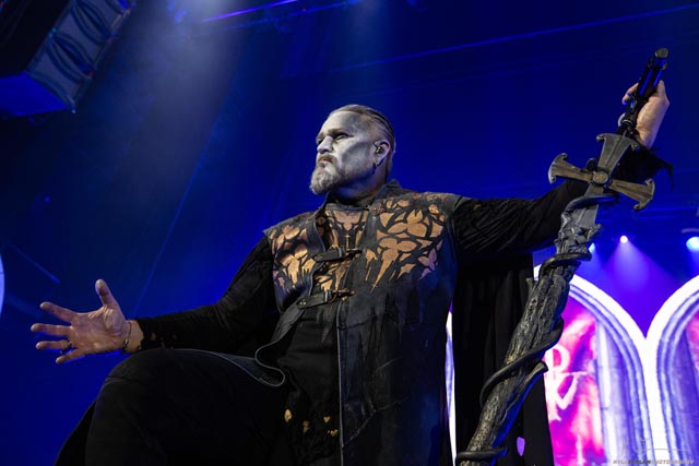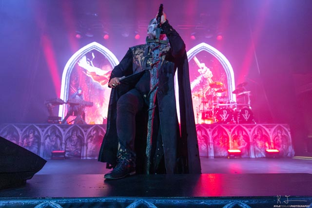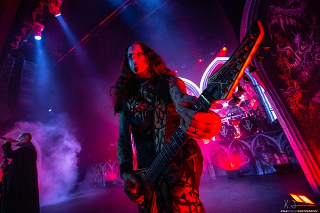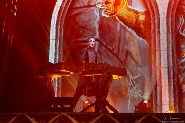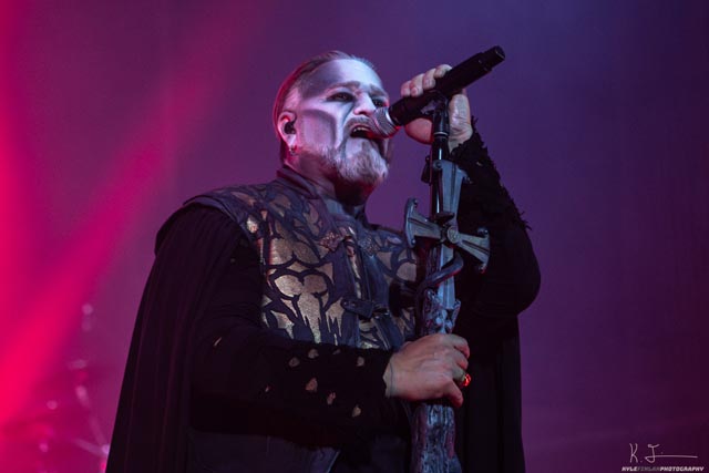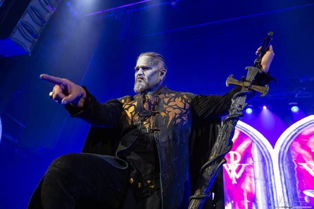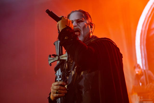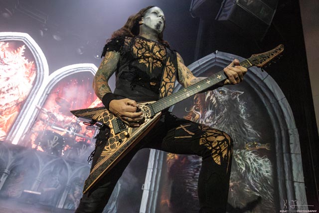 After quite a bit of prop takedown time, another setup took its place. Powerwolf took the stage and their setup revolves around Catholic/gothic church aesthetic. It was right at home at tonight’s venue, The Masonic Temple, which has gothic revival architecture. So the prop decor resembling ornate arches looked almost made for this stage. The 5 man band themselves also take on the theme with robes and clothing with cathedral imagery on them, plus ashy corpse paint. The set began with a blessing of sorts, including an incense ‘cleansing’ (like when mass begins at a church) which led into an almost too obvious song to follow “Incense and Iron”. It was easy to get caught into the show after that. Powerwolf has some of the catchiest melodies in music and it set the crowd ablaze for every song. Not to mention, singer Attila Dorn has so much charisma both while he’s singing and in his way of commanding the audience. The amount of crowd involvement at this show was a pivotal part of why it was so enjoyable. They had us singing some of the big hook melodies of songs like “Armata Strigoi” and crowd favorite “Demons are a Girl’s Best Friend”, they got the crowd jumping in unison for other songs, and even split the audience in multiple spots to see who can sing the loudest. If you like being part of the show, Powerwolf gladly invites you to join their Heavy Metal Army.