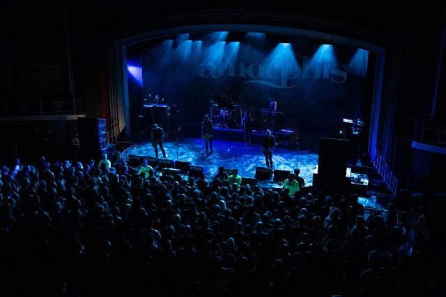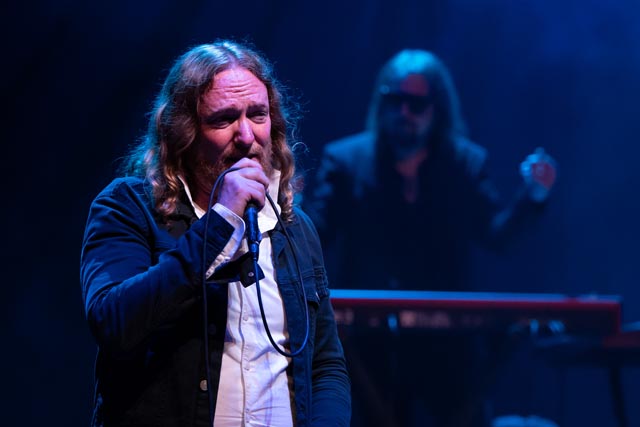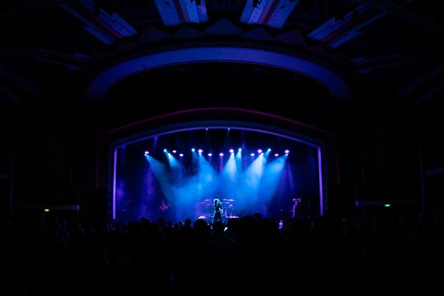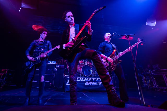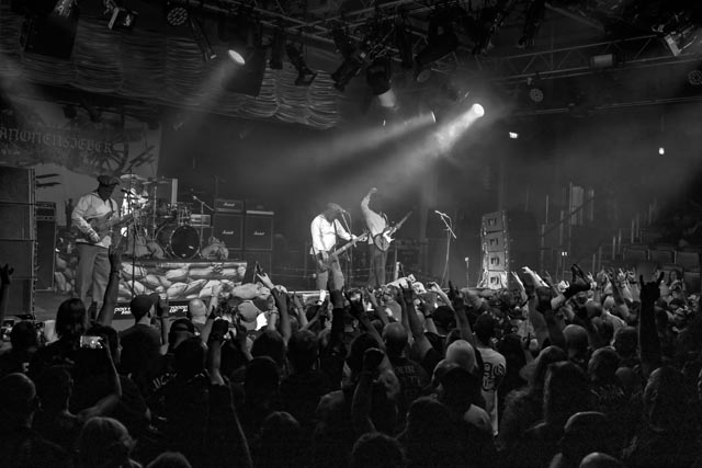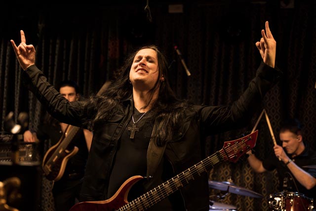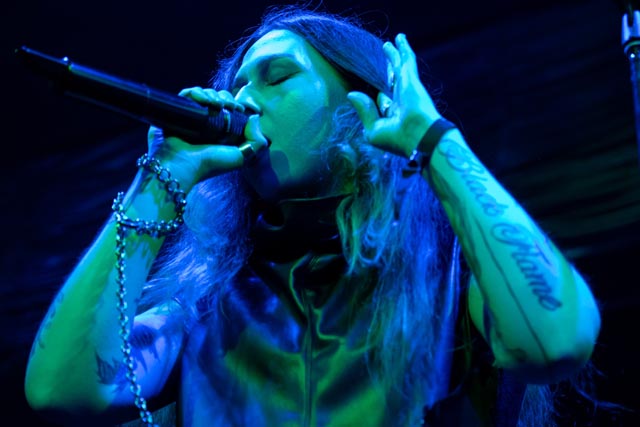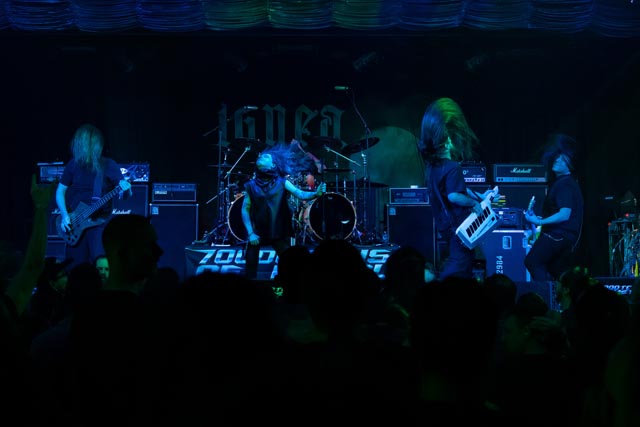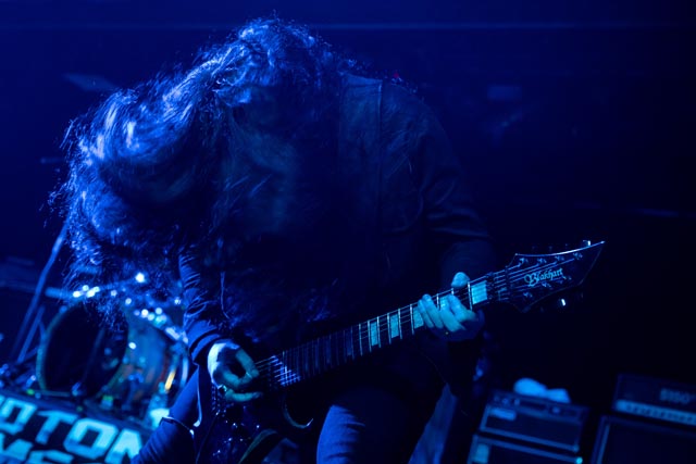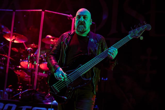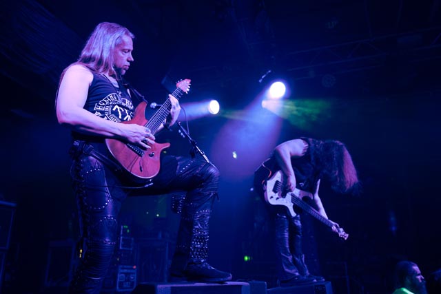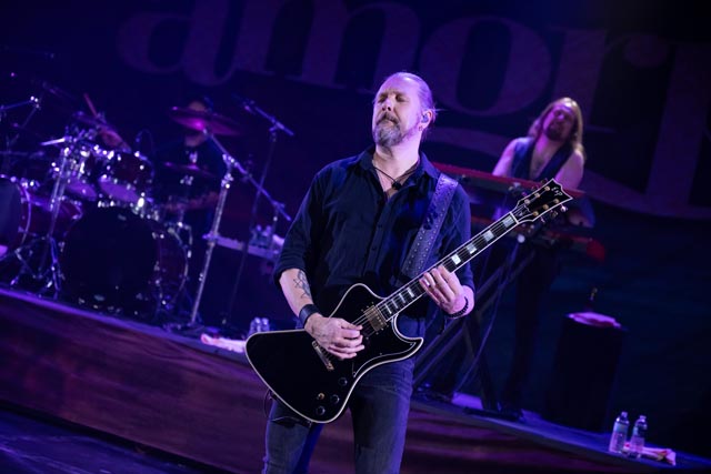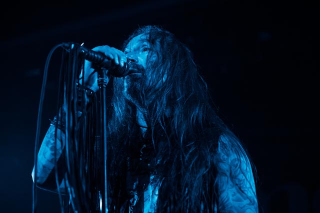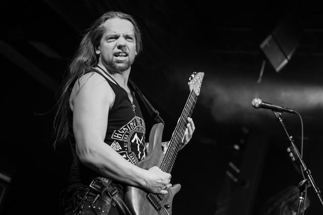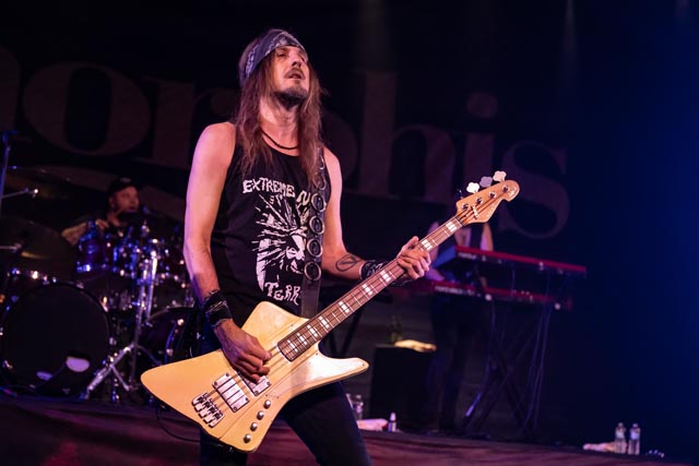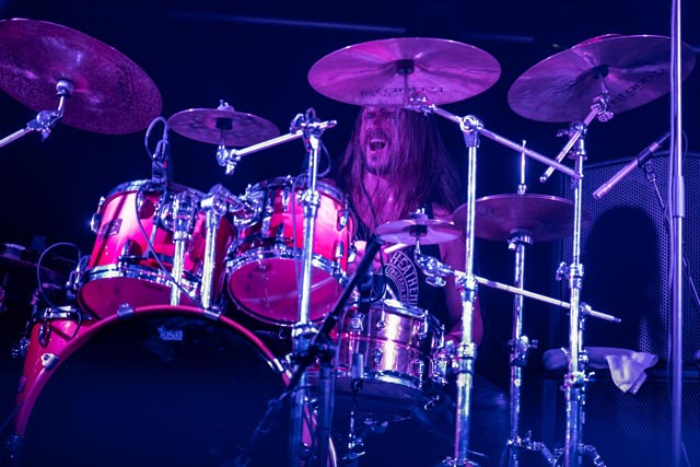 After this, I headed down to Studio B to see Tribulation, who put on a killer show of gothic and doom metal while giving post-punk vibes with their outfits, makeup, and mannerisms. I headed back up to the Pool Deck to see more gothic/doom metal from Paradise Lost. The atmosphere was perfect for the band, with a light mist under the full moon creating a dreary vibe, but the band still apologized for bringing the British weather to the Caribbean with them. After running down to the Royal Theater to catch Dark Tranquility play songs off of two of their most popular albums, The Gallery and Character, I headed back to the Pool Deck to catch a bit of Wind Rose’s set. Despite the gloomy weather, the crowd was rambunctious, so much so that the Pool Deck stage had to be closed briefly after their set for the crew to reset the floor tiles, which had come loose from the crowd’s jumping! Then I made my way back to the Royal Theater to see Insomnium playing Shadows of a Dying Sun in full. With the play through of this fan-favorite album, the theater was completely packed full of people singing, dancing, and otherwise expressing the deep feelings brought out by Insomnium’s melancholy expression of the human condition.