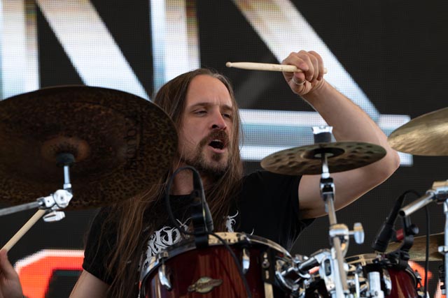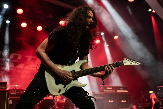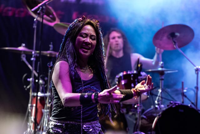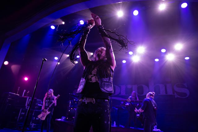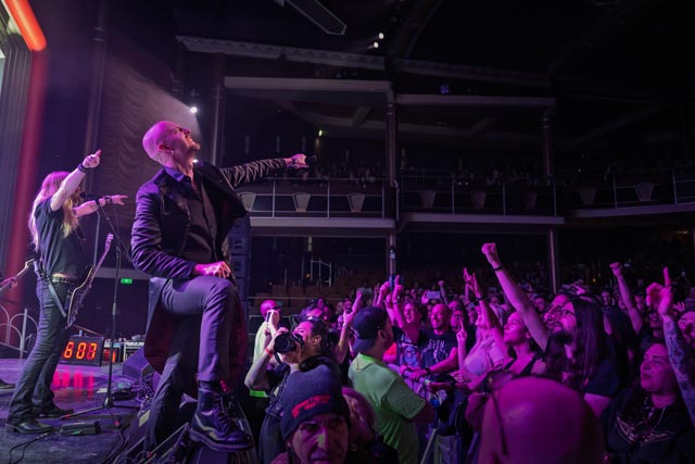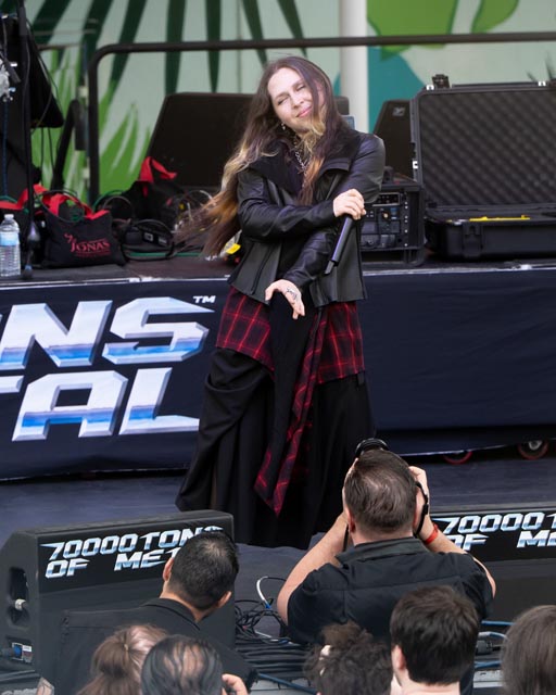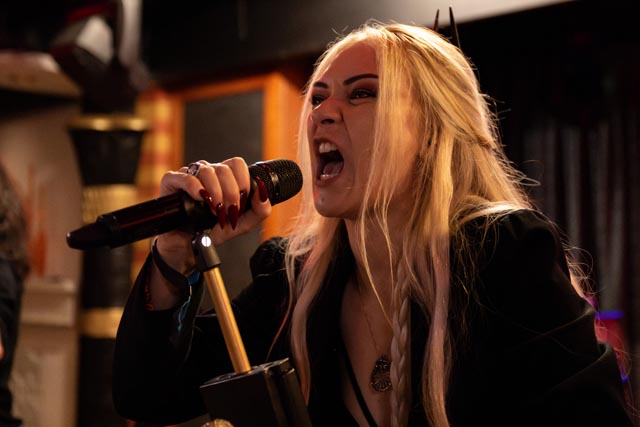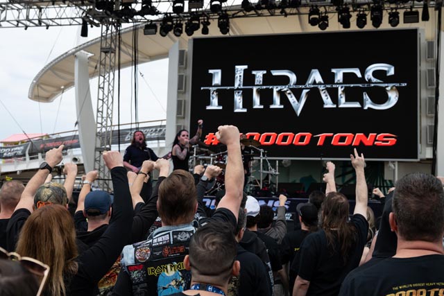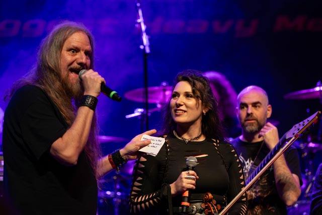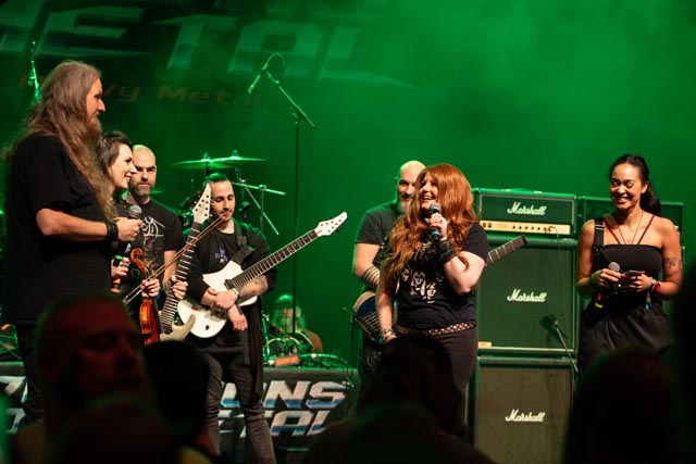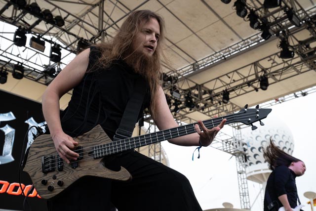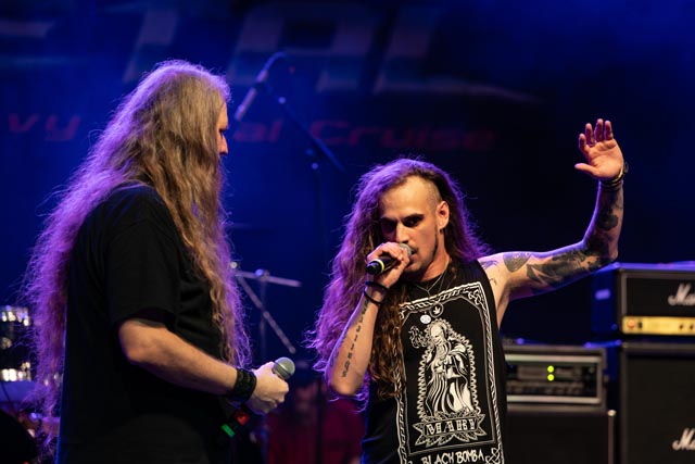 After taking a break for lunch, I went to the Royal Theater to catch the All Star Jam, which features bands composed of artists from various bands on board playing covers of classic metal songs. This year, the jam was hosted by Alexander Krull (Leave’s Eyes) and Melissa Bonny (Ad Infinitum) and included songs like “Rainbow in the Dark” by Dio and “Master of Puppets” by Metallica. Kim Dylla made another appearance here, singing on a cover of “In Your Face” by Children of Bodom. In the short interview after the song, she mentioned she doesn’t consider herself a great singer, but that she was asked to sing on this cover due to her close friendship with Alexi Laiho prior to his passing in 2020.