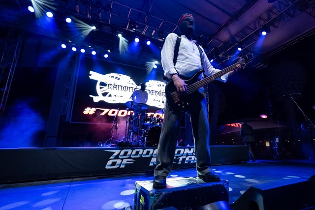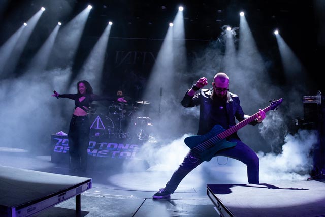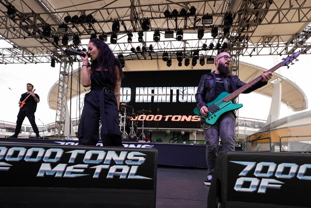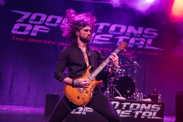 By the morning of Day 2, Freedom of the Seas had already docked in Nassau, and passengers were free to disembark to explore the port, shop at the markets, or go on their scheduled excursions. Despite the chilly weather, the water temperature was not too bad, and the snorkeling excursion I went on was still very fun! After returning to the ship, meeting some friends at the arcade, and quickly grabbing some dinner at Windjammer, I headed over to the Royal Theater to start my evening. Ad Infinitum are masters of stage presence, with perfectly timed jumps, kicks, and poses emphasizing their catchy choruses and dramatic breakdowns. Next up, I wanted to see Amorphis on the Pool Deck, but it was rainy and cold, and the shaded areas on the side of the deck were so packed you could barely move, so instead I headed down to see Ignea in Studio B. The Ukrainian band is rapidly rising in popularity, but has played exclusively in Europe until this festival, giving other worldwide fans their first live taste of its evocative melodic folk sound. In the Royal Theater, Firewind played their first show since the return of vocalist Henning Basse to the band and had Kadria from Inviolate come out to dance for “Maniac” near the end of their set.