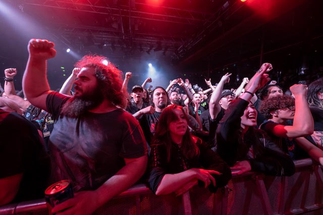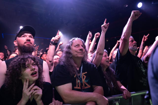 On Day 2, I did see a few repeat-artist sets, like Harakiri for the Sky, who played a completely different set, and Cemetery Skyline and Kanonenfieber, who played some repeat songs and added some new ones for their second set. Seven Spires played their “Emerald Seas” album in full, stating that they were excited to play the album, since the original spring 2020 tour for the album was canceled after one show. After that, I saw black metal band T.H.E.M in Studio B. They would be my 2026 candidate for the forum-voted “Cripper Award” (awarded to smaller/new/unknown bands that exceed expectations), but there hasn’t been any sign that there will be one. I headed up to the Pool Deck to see Bloodred Hourglass close out the Pool Deck at 5am, playing to the small group of dedicated and energetic fans willing to stay up so late.